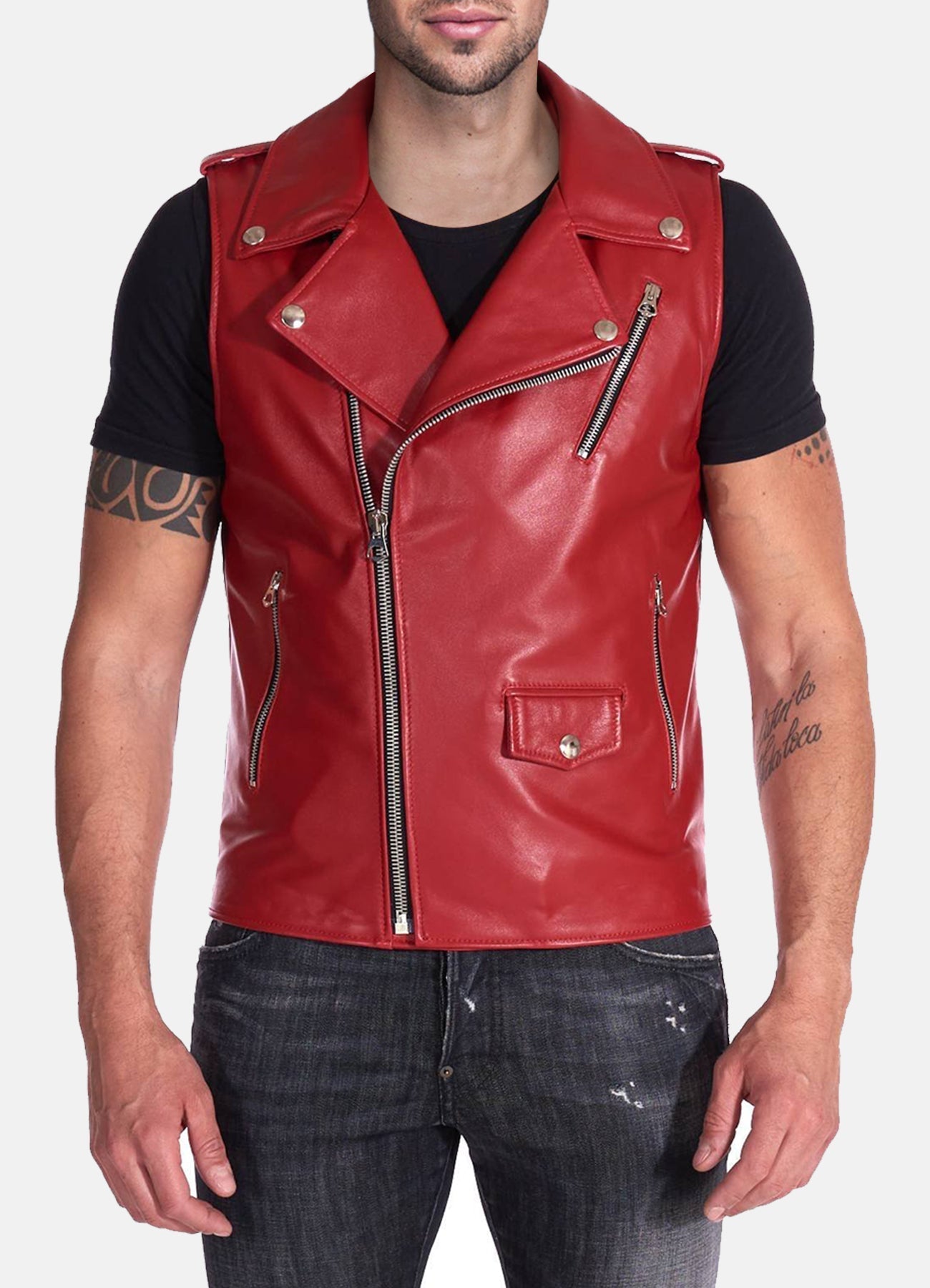 Whether you're riding your bike or embracing urban adventures, the Mens Red Biker Leather Vest effortlessly combines fashion and edge. Redefine your wardrobe with this exceptional piece, where attitude meets style in every detail.