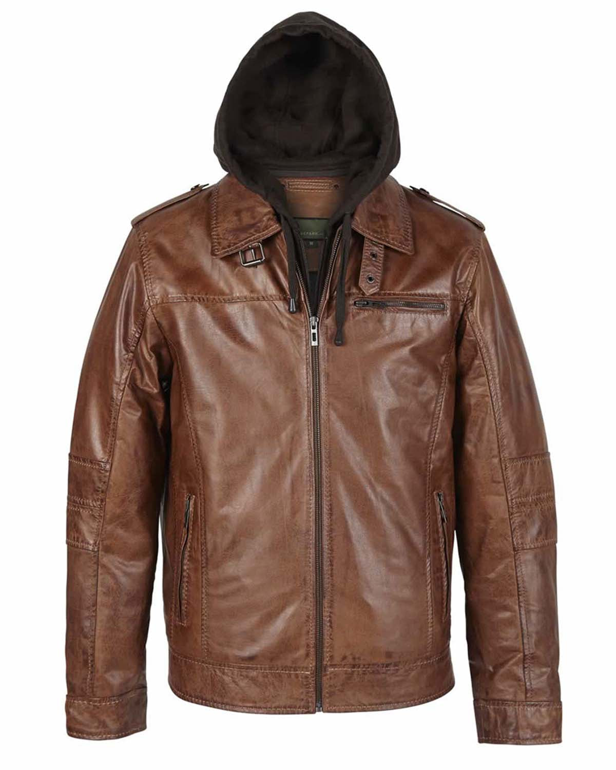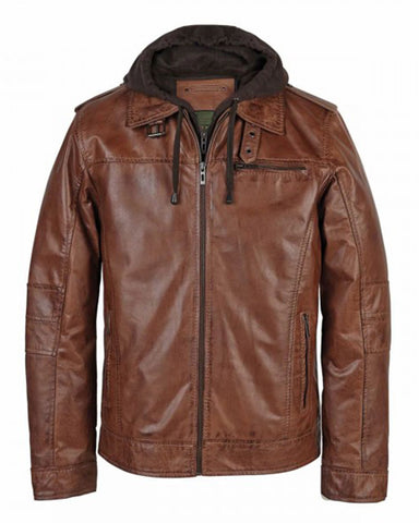 An stylish and contemporary outerwear piece that combines ruggedness with urban flair. Crafted from high-quality brown leather, this jacket offers durability and a unique aesthetic. Adding a hint of warmth and individuality, the rust hue distinguishes it from conventional brown leather coats. Its hooded style with an adjustable drawstring gives it additional weather protection while giving the traditional silhouette a contemporary update.Mens removable hood leather jacket made of genuine leather black and brown the leather is 100% genuine. All-season style. Detachable inner hood made of skin-friendly viscose. Drawstrings with a ykk zip fastening. Three outside and two inside pockets are provided for travel needs.