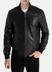 Mens limfit Black Bomber Leather Jacket - X-Small / Black