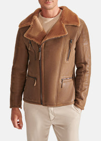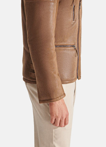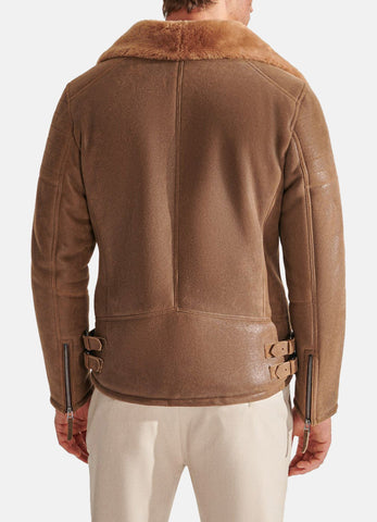 Mens oft Tan Shearling Leather Jacket - X-Small / TAN