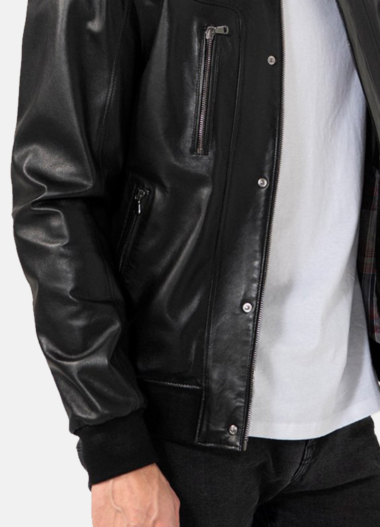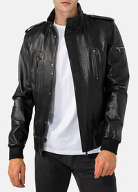 Mens ports Black Lambskin Leather Jacket - X-Small / Black