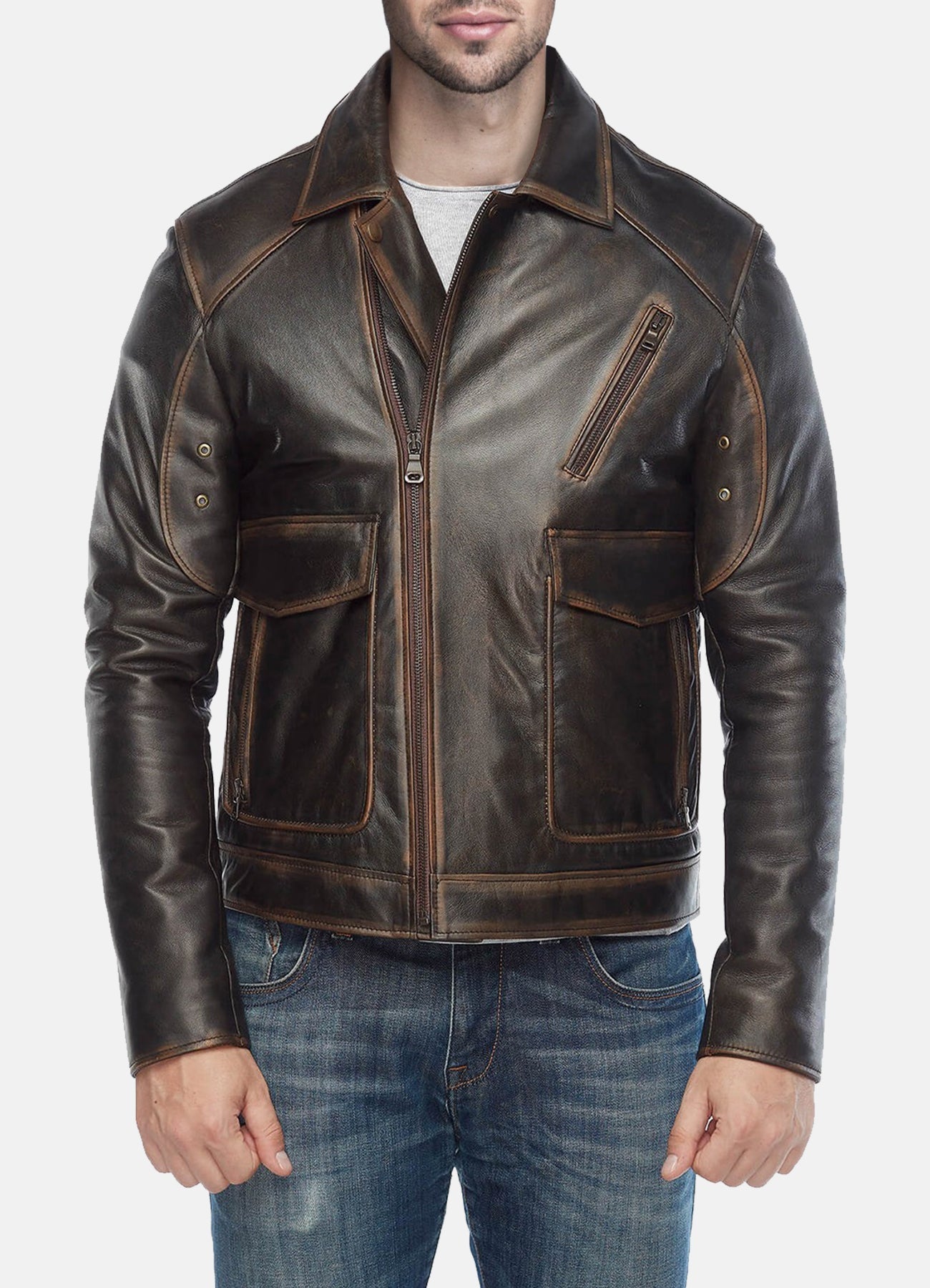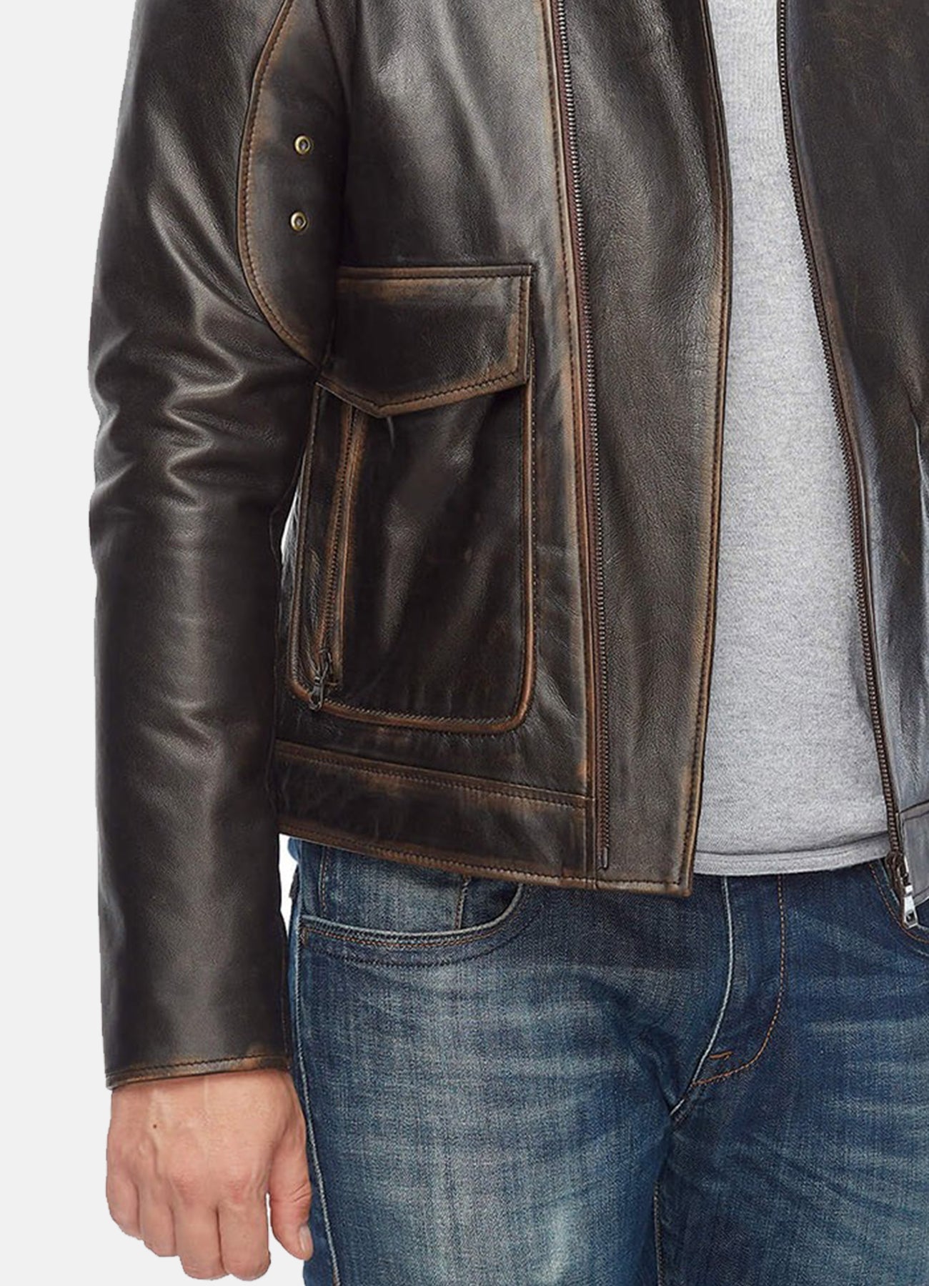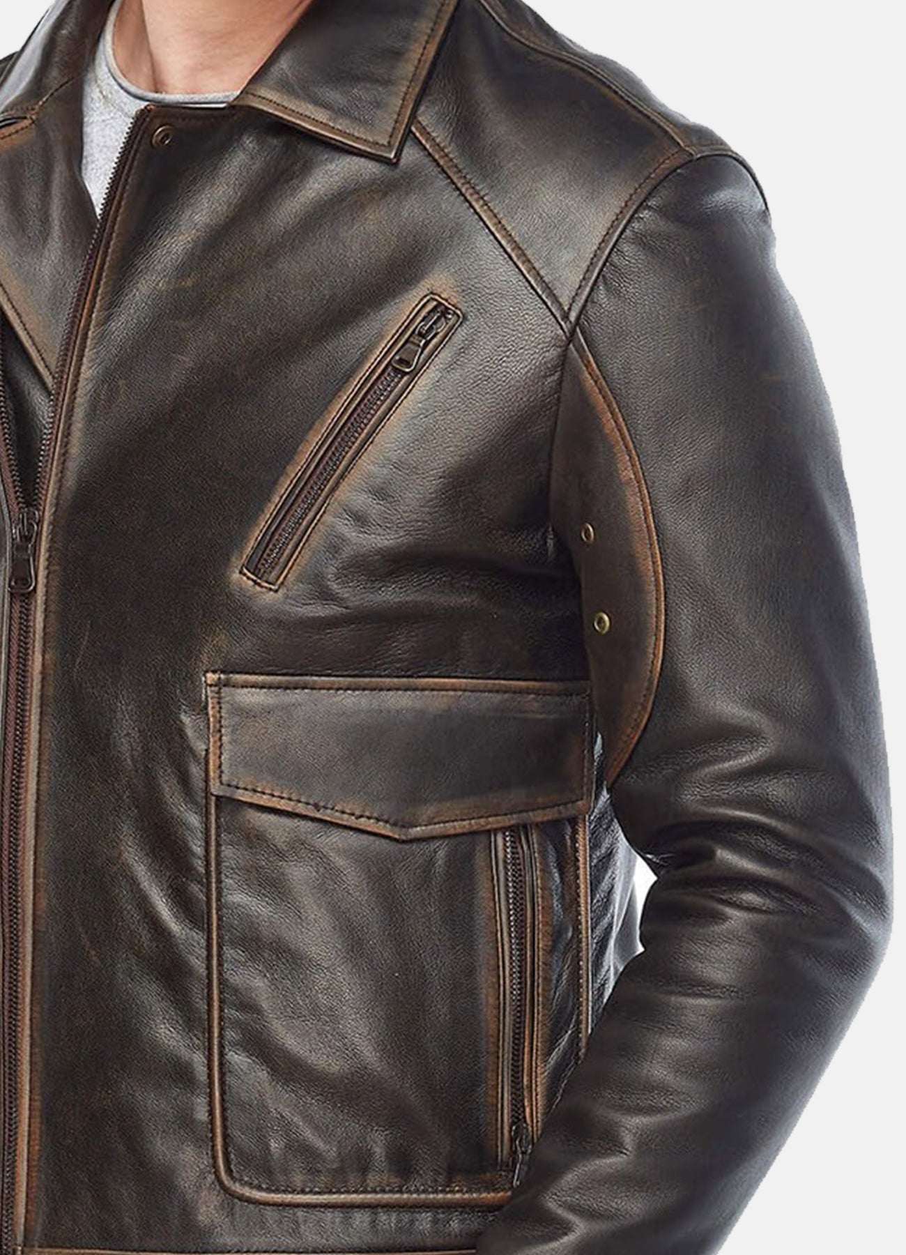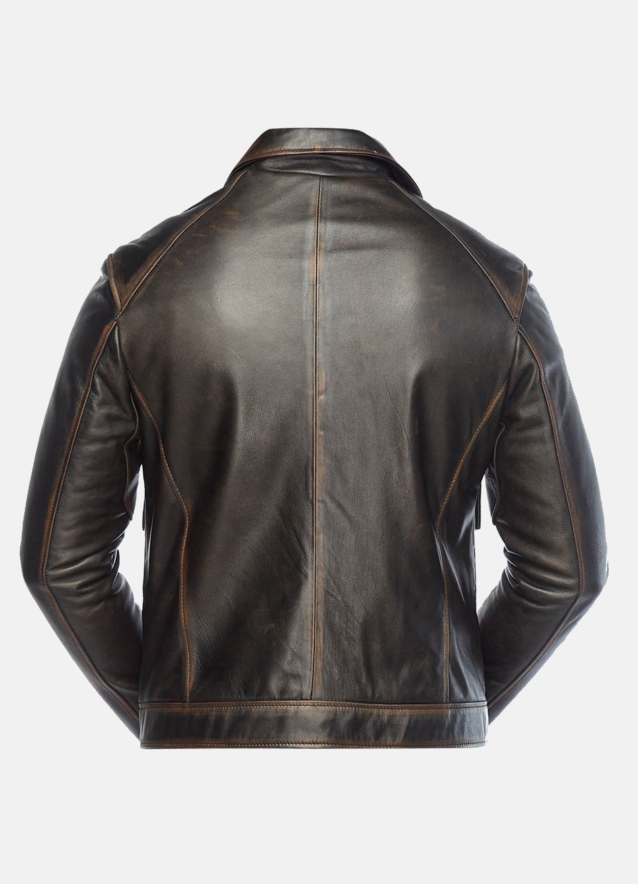 Mens Vintage Distressed Black Biker Leather Jacket Sale