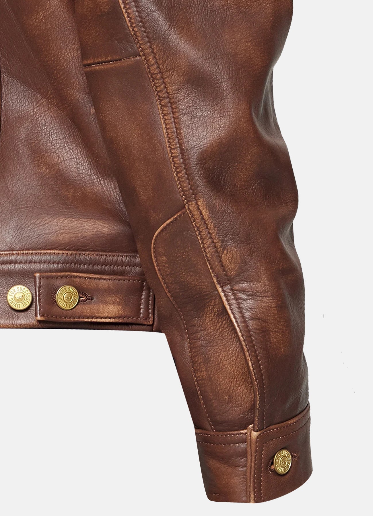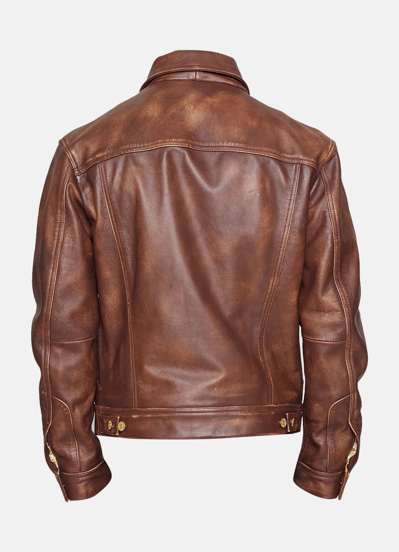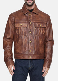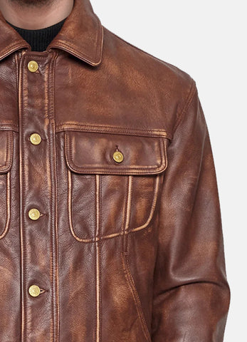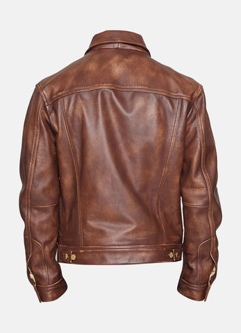 Mens Vintage Style Distressed Leather Jacket - X-Small / Brown