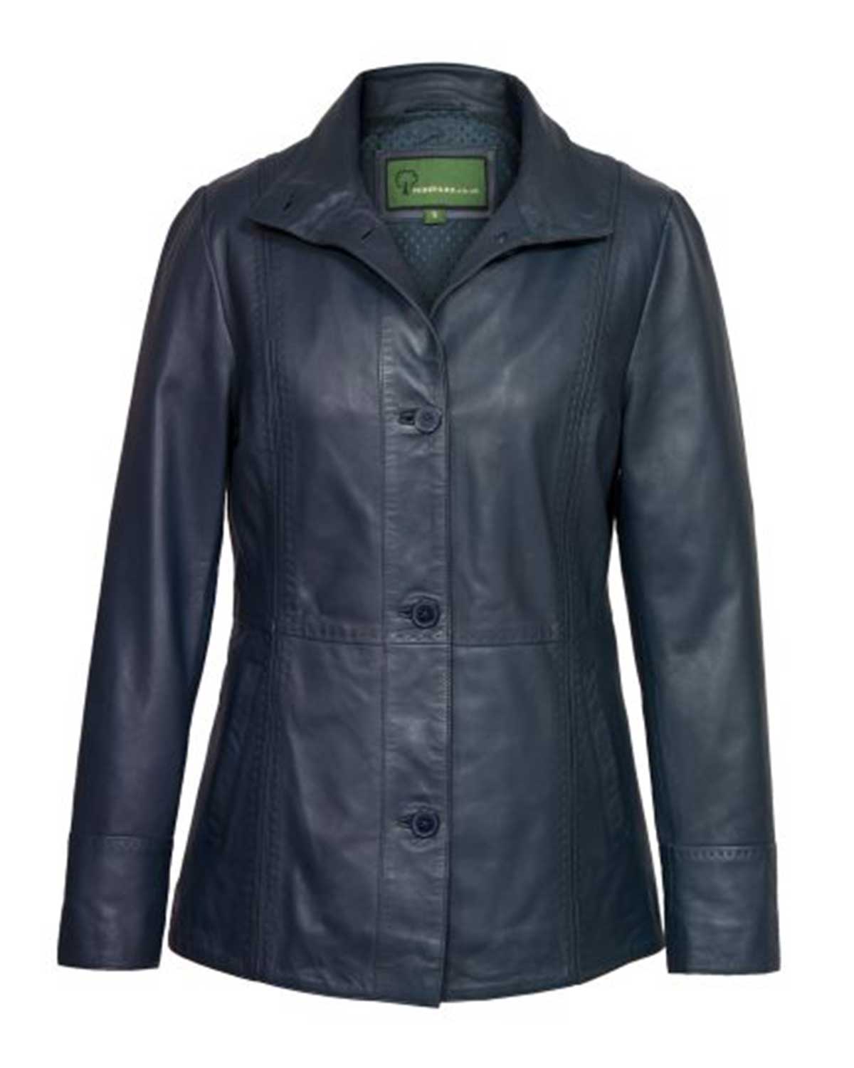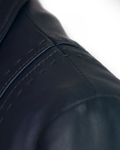 The viscose lining enhances comfort, providing a luxurious feel against the skin. Multiple pockets add practicality without compromising style, and the full zip closure cuffs on the sleeves contribute to the jacket's edgy appeal. With premium-quality stitching, this Womens Navy Blue Biker Jacket is designed to elevate your wardrobe, offering a stylish and timeless addition for the modern woman.