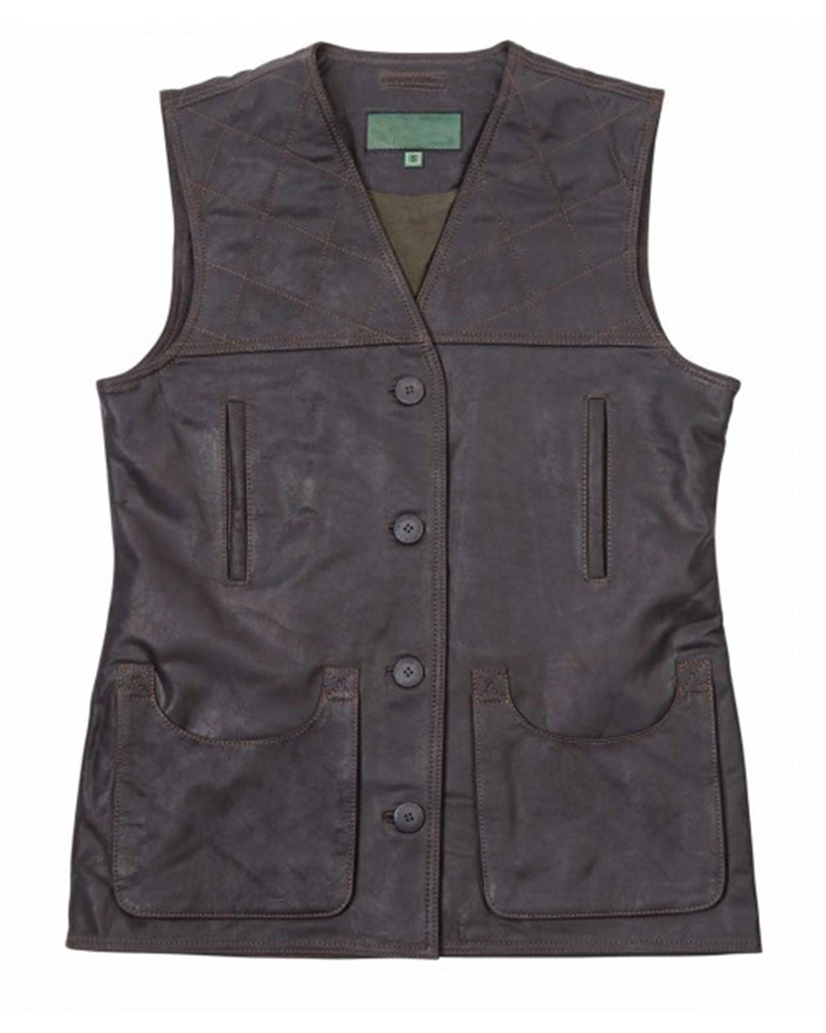 The WoMens Vintage Brown Leather Shooting Vest is a chic and useful addition to any outfit. Made from high-quality leather in a retro brown color, this vest is designed for ladies who value style and functionality. The moleskin lining made of cotton adds a touch of luxury and improves comfort.