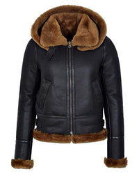 Elevate your winter wardrobe with our Hooded Jacket, a perfect blend of style and comfort. Crafted from genuine sheepskin leather, this jacket exudes timeless elegance in classic black.