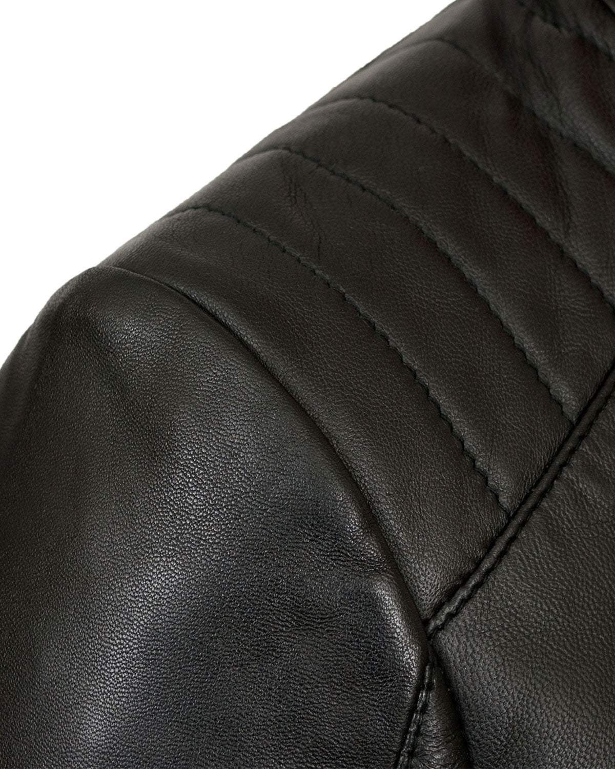 The zip-fasten cuffs contribute to the biker-inspired look. The tonal satin-look lining adds a luxurious touch to the ensemble. With a timeless design and a center back length of approximately 60cm, this black leather biker jacket for women is a versatile and chic wardrobe essential. Additionally, it is available in any color shade of your choice, providing a personalized touch to your style.