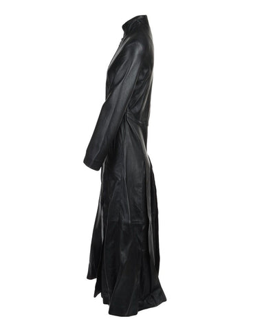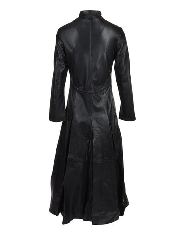 Introducing our WoMens Gothic Coat in classic black, a timeless piece that's both edgy and elegant. Crafted from 100% genuine leather, this coat exudes a dark and mysterious allure. It features a unique halfway zip-up fastening and a stylish shirt-style collar, giving you that perfect blend of comfort and style. The polyester lining ensures a cozy feel, while two side pockets provide practicality without sacrificing aesthetics. With full sleeves and open hem cuffs, this gothic coat is a statement piece for those who crave a bold fashion statement. Embrace your dark side and make a striking impression with this exceptional piece.