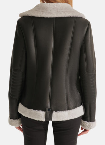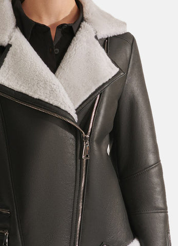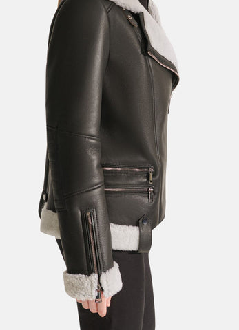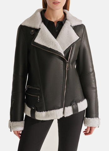 Womens Black Sport Shearling Leather Jacket - X-Small / Black