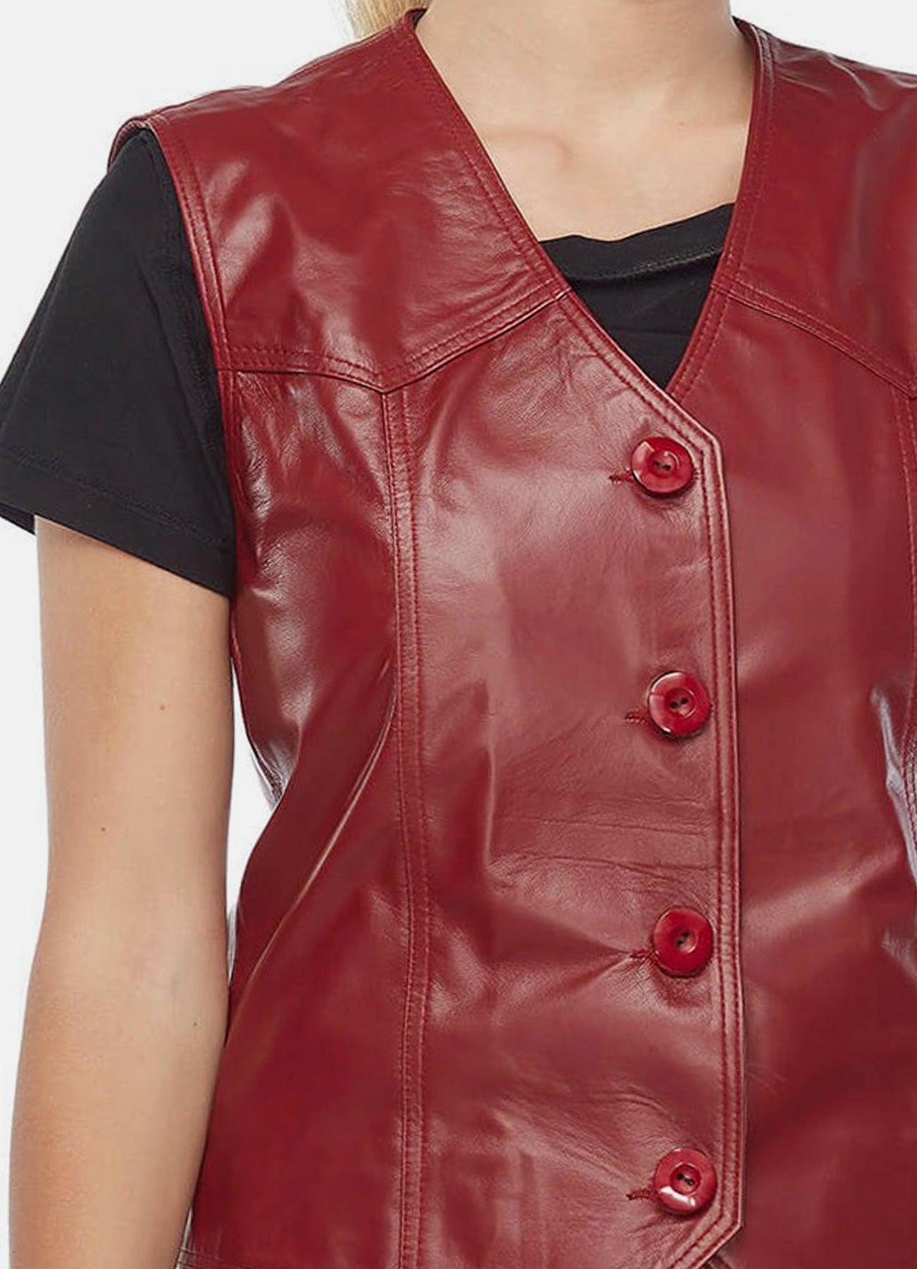 Womens Bright Red Biker Leather Vest - X-Small / Red