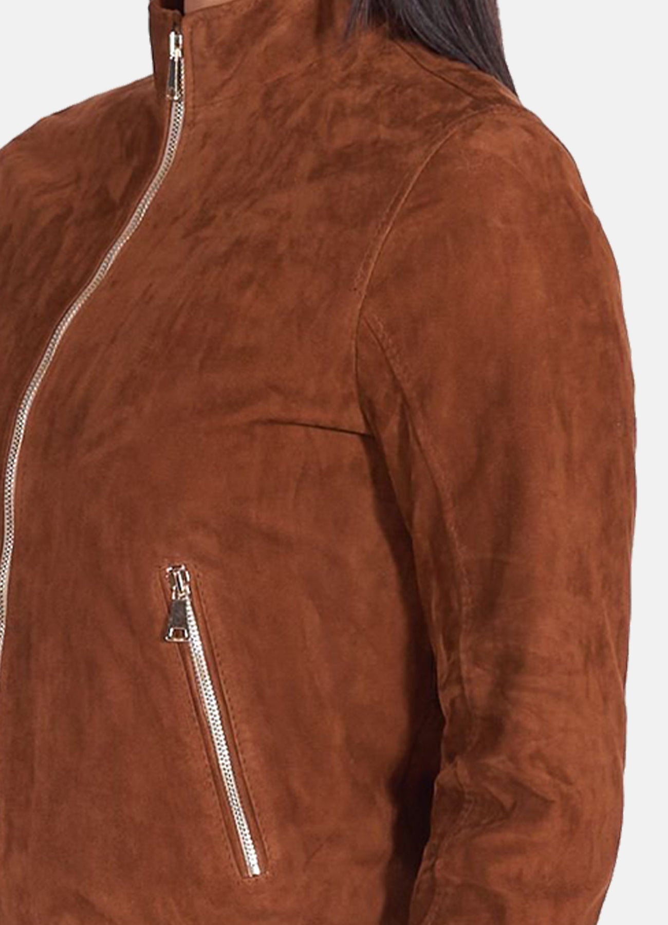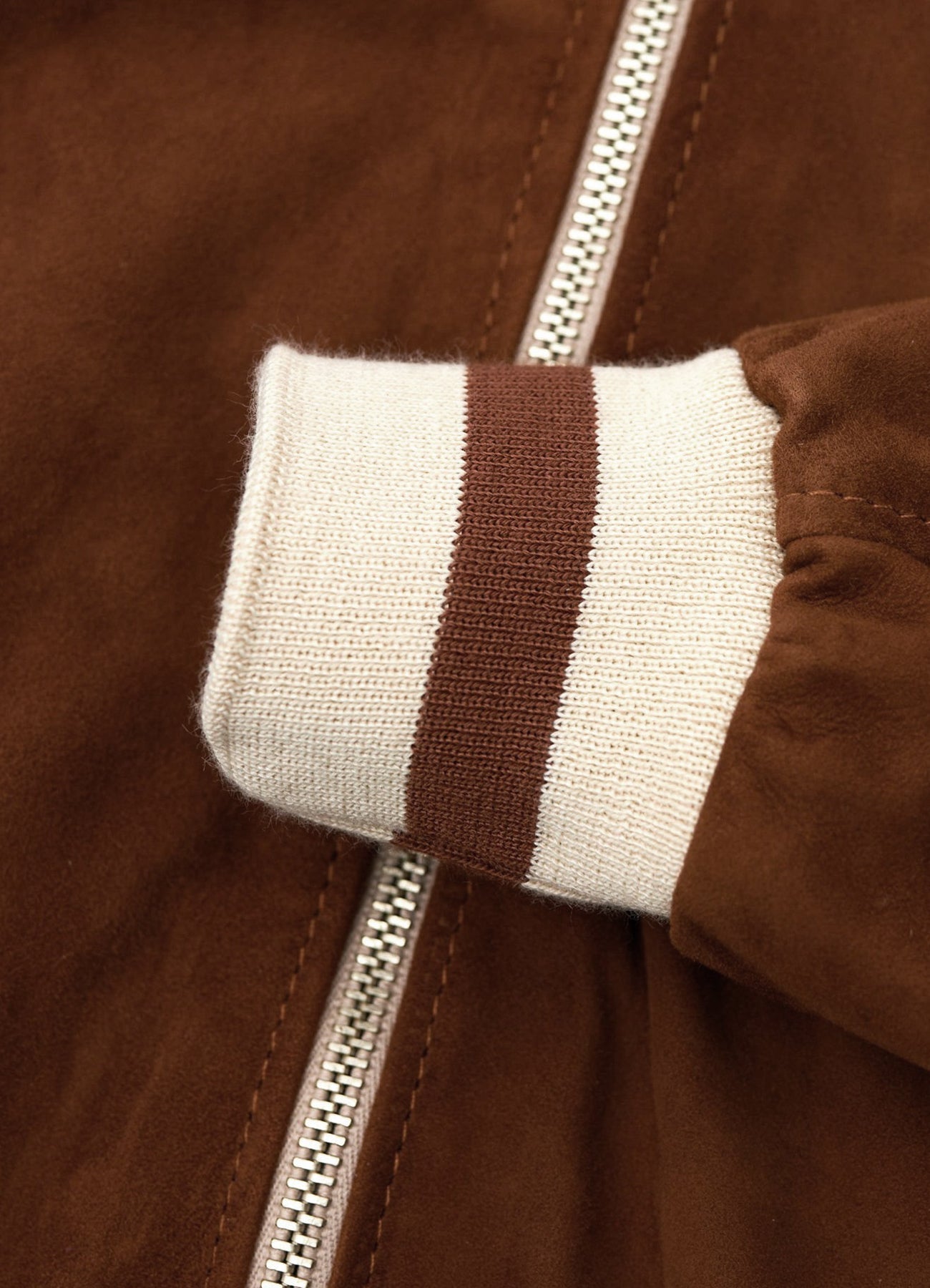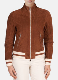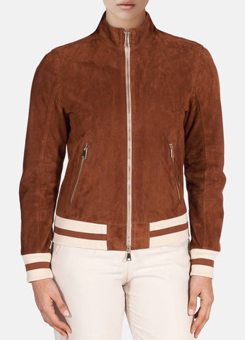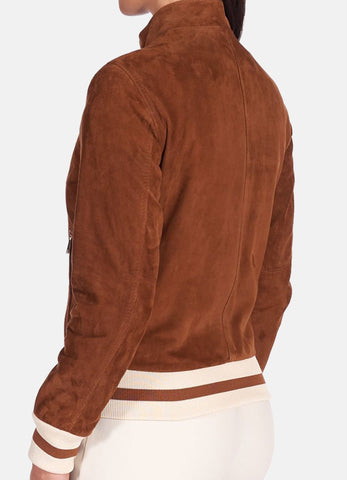 Womens Brown Bomber Suede Leather Jacket - X-Small / Brown