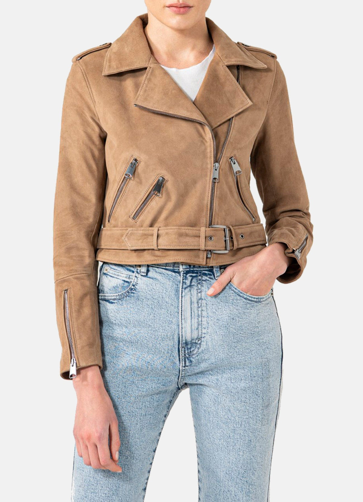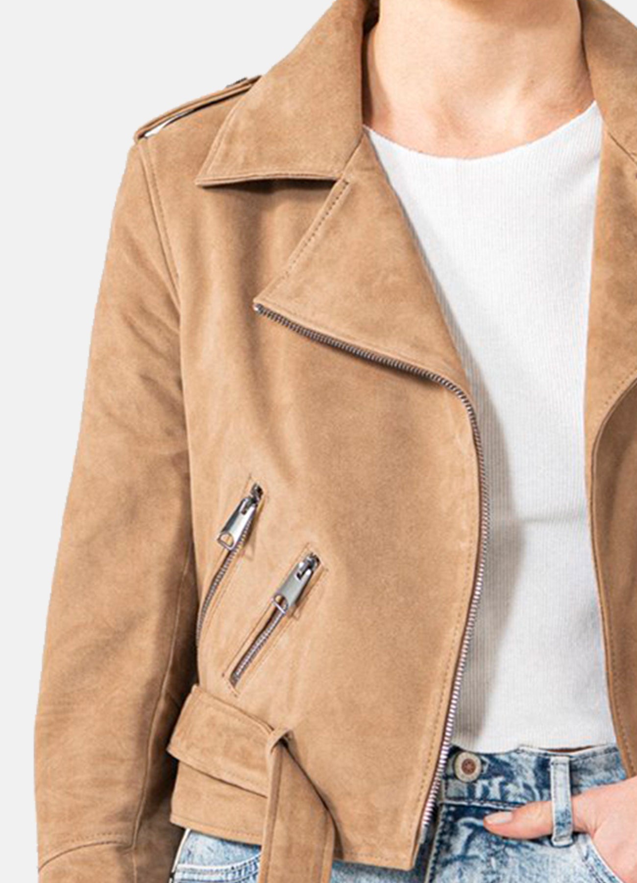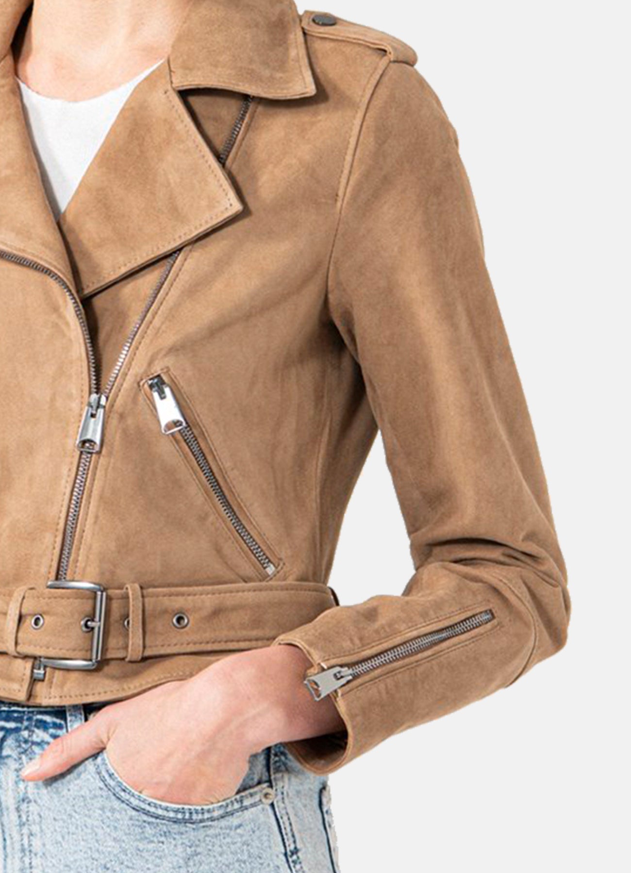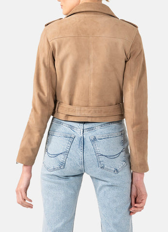 Womens Camel Suede Biker Leather Jacket Sale