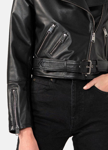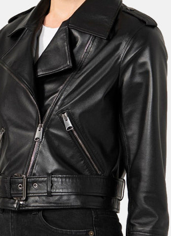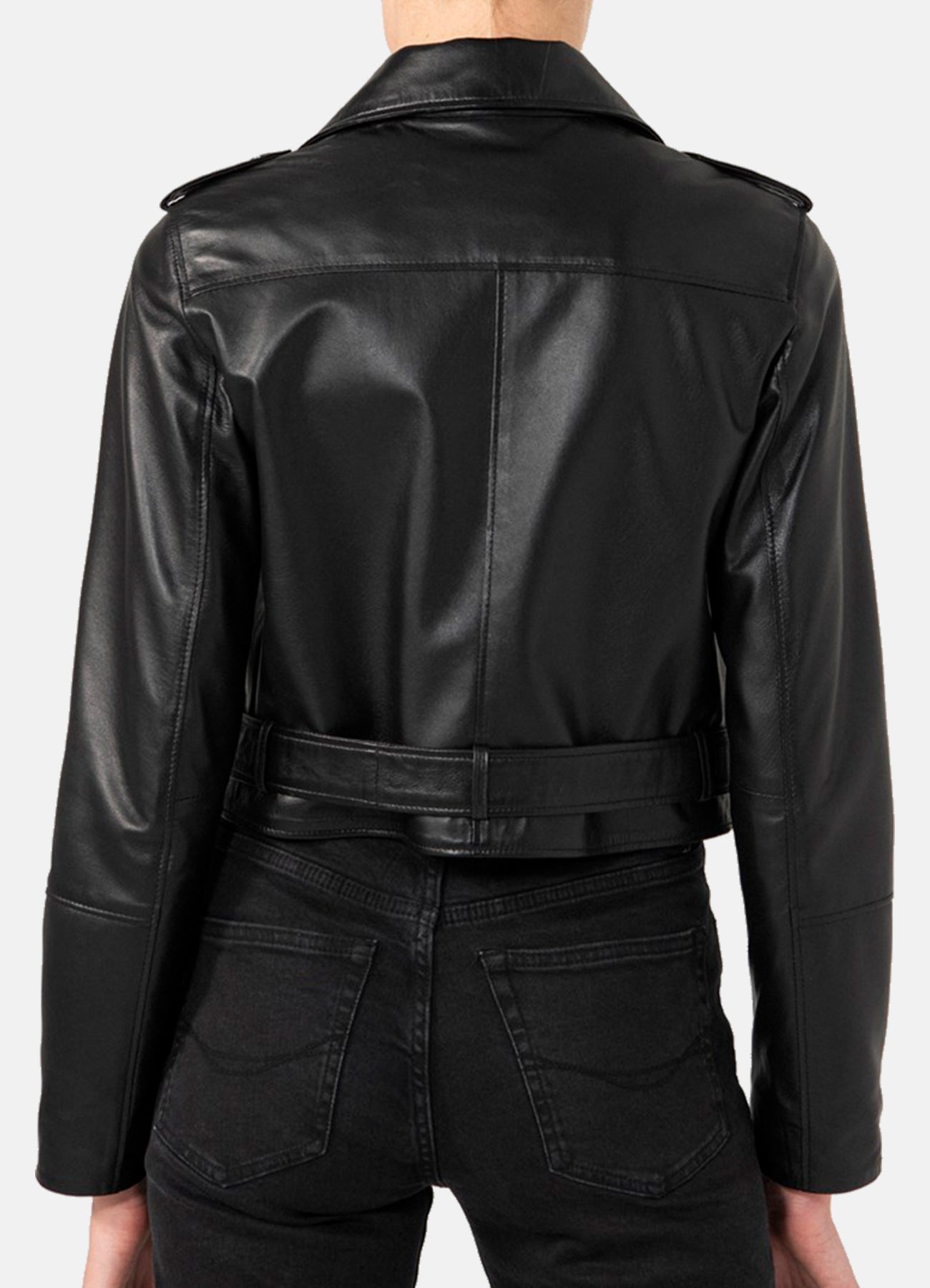 Womens Casual Black Biker Leather Jacket - X-Small / Black