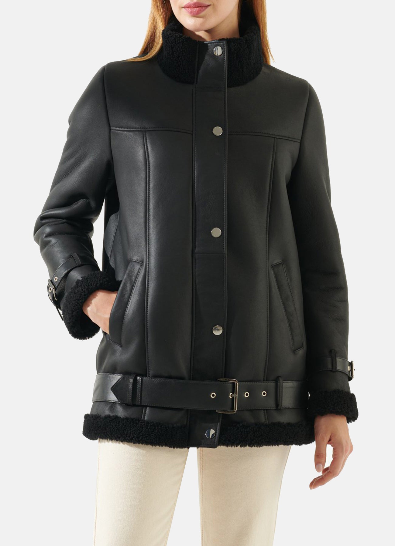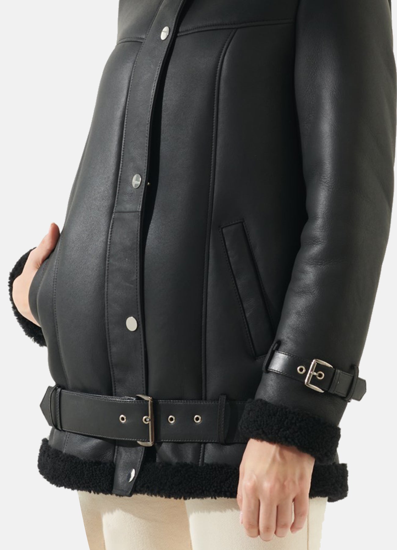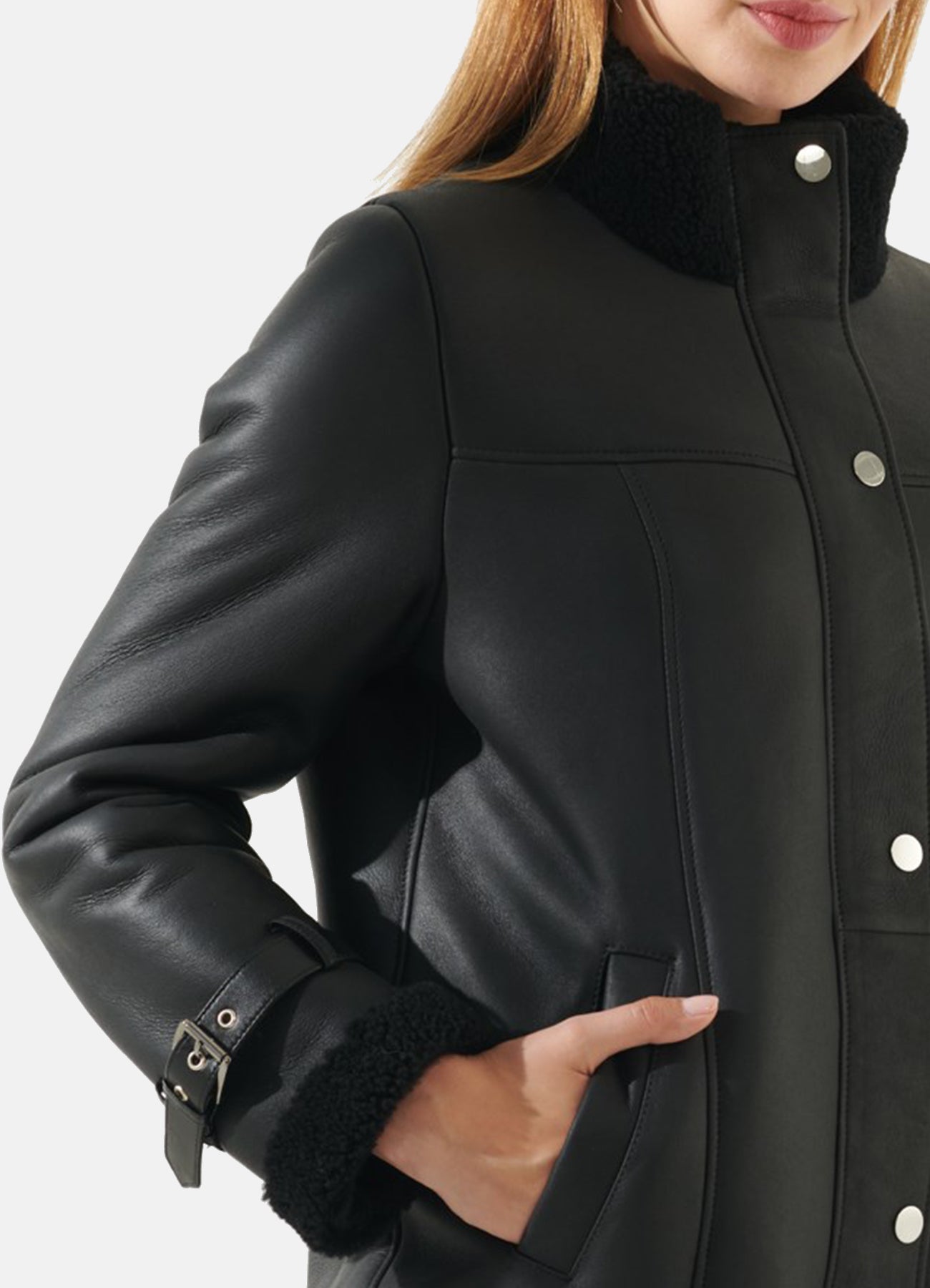 Womens Casual Black Oversized Shearling Leather Jacket Sale