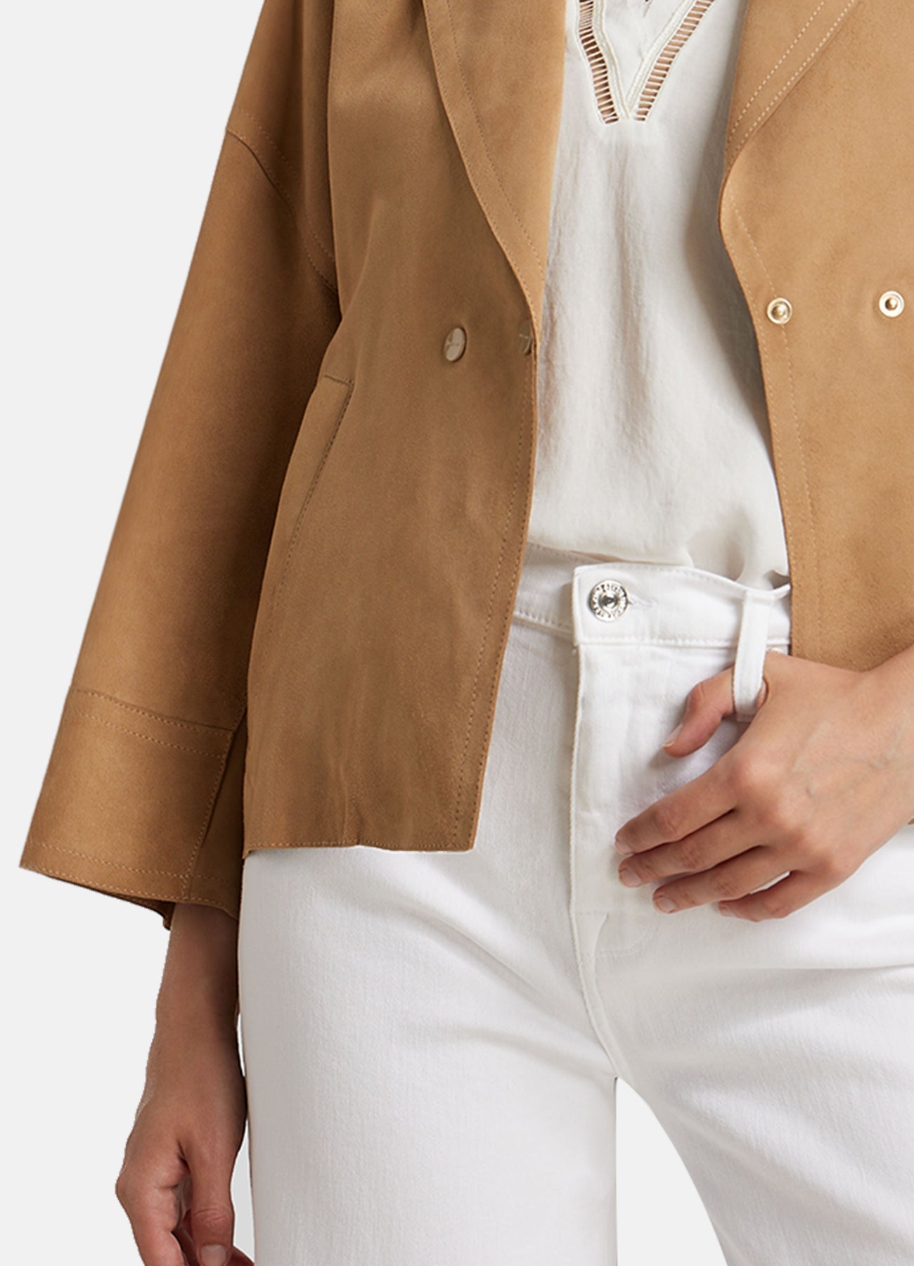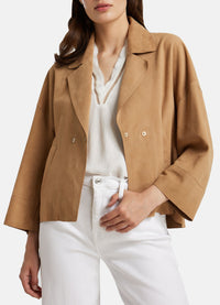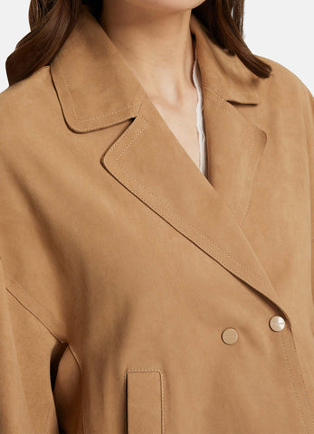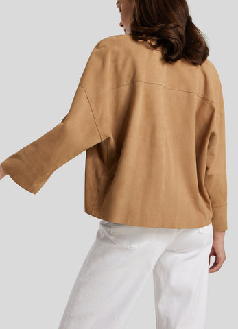 Womens Casual TAN Suede Leather Jacket - X-Small / TAN