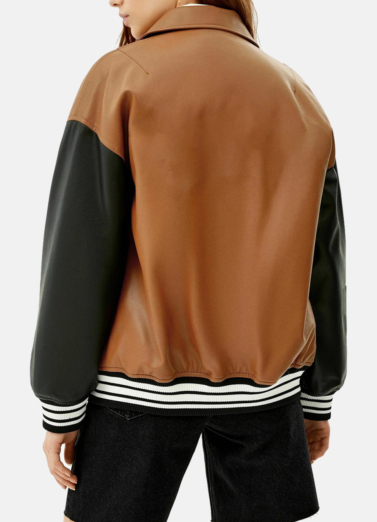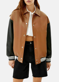 Womens Chocolate Brown Varsity Leather Jacket Sale