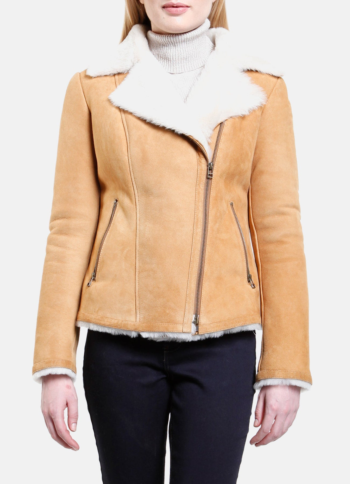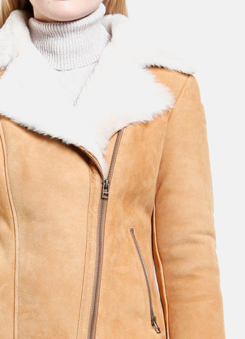 Womens Classic Tan Shearling Leather Jacket Sale