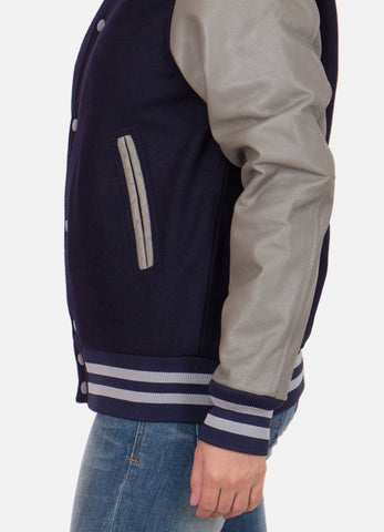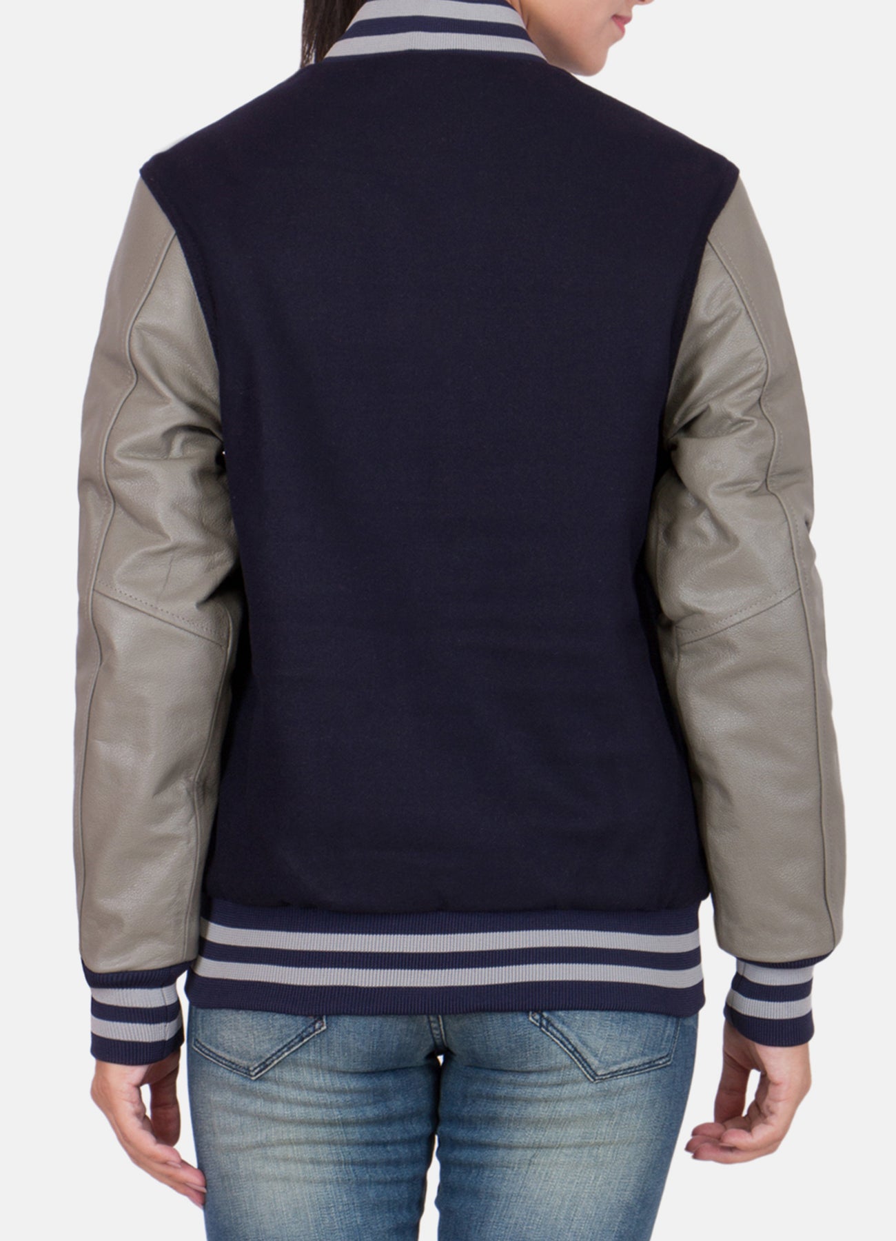 Womens Dark Blue and Grey Varsity Jacket Sale