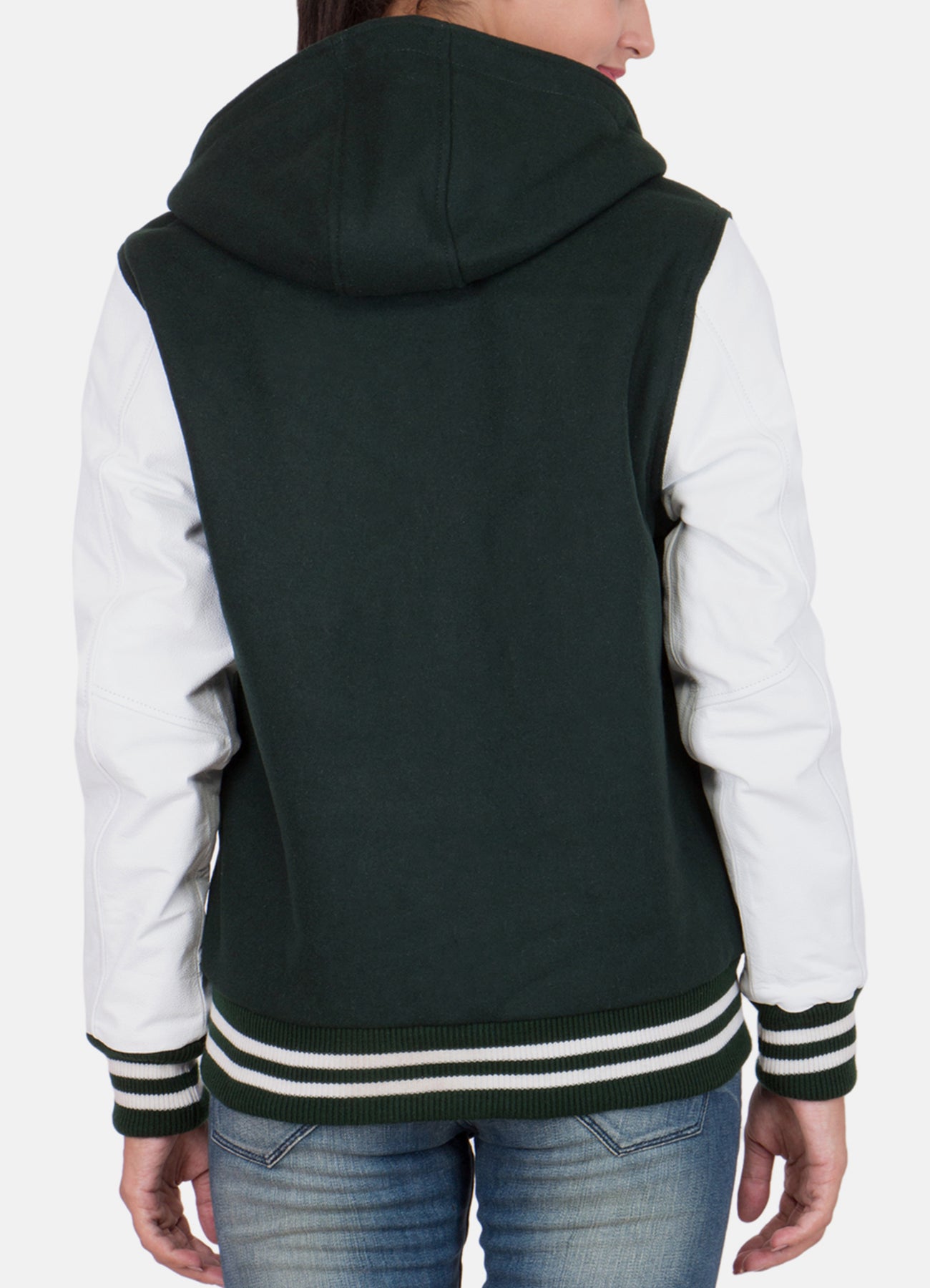 Womens Dark Green and White Varsity Jacket - X-Small / Dark Green and White
