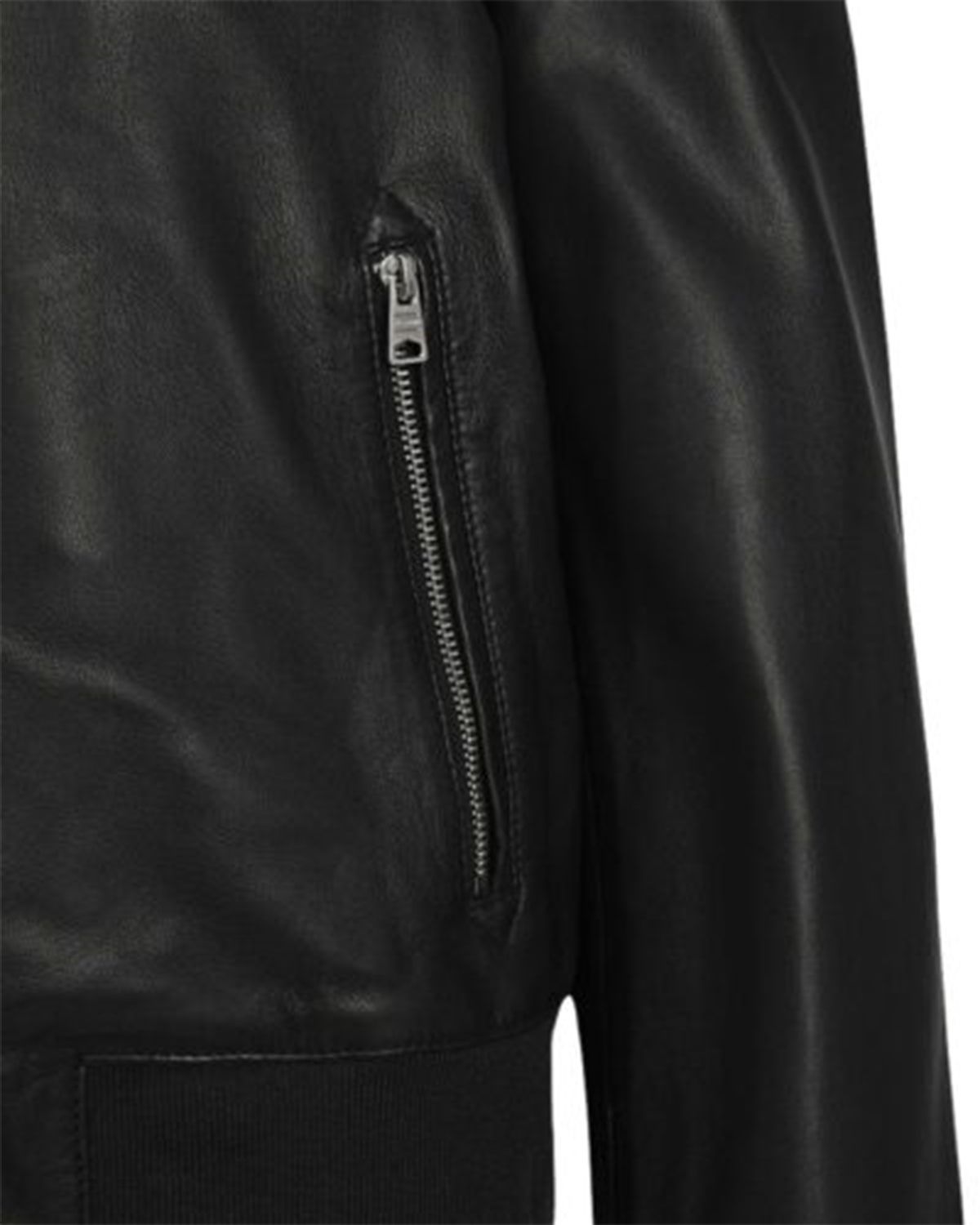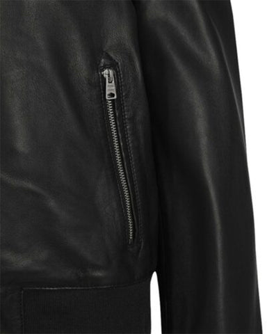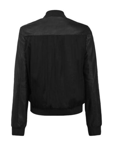 Womens Elegant Black Bomber Leather Jacket - Black / XS