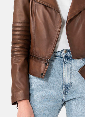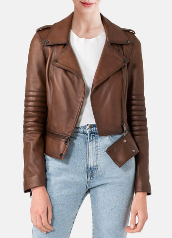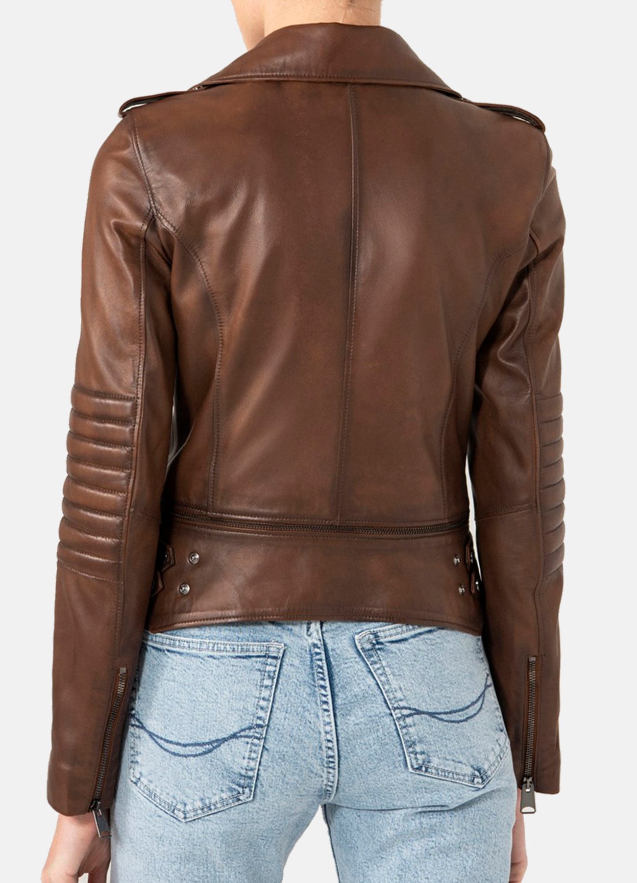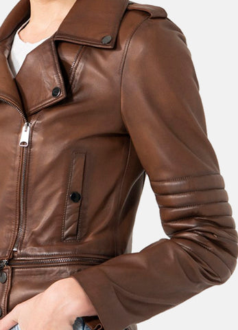 Womens Fitted Brown Biker Leather Jacket - X-Small / Brown