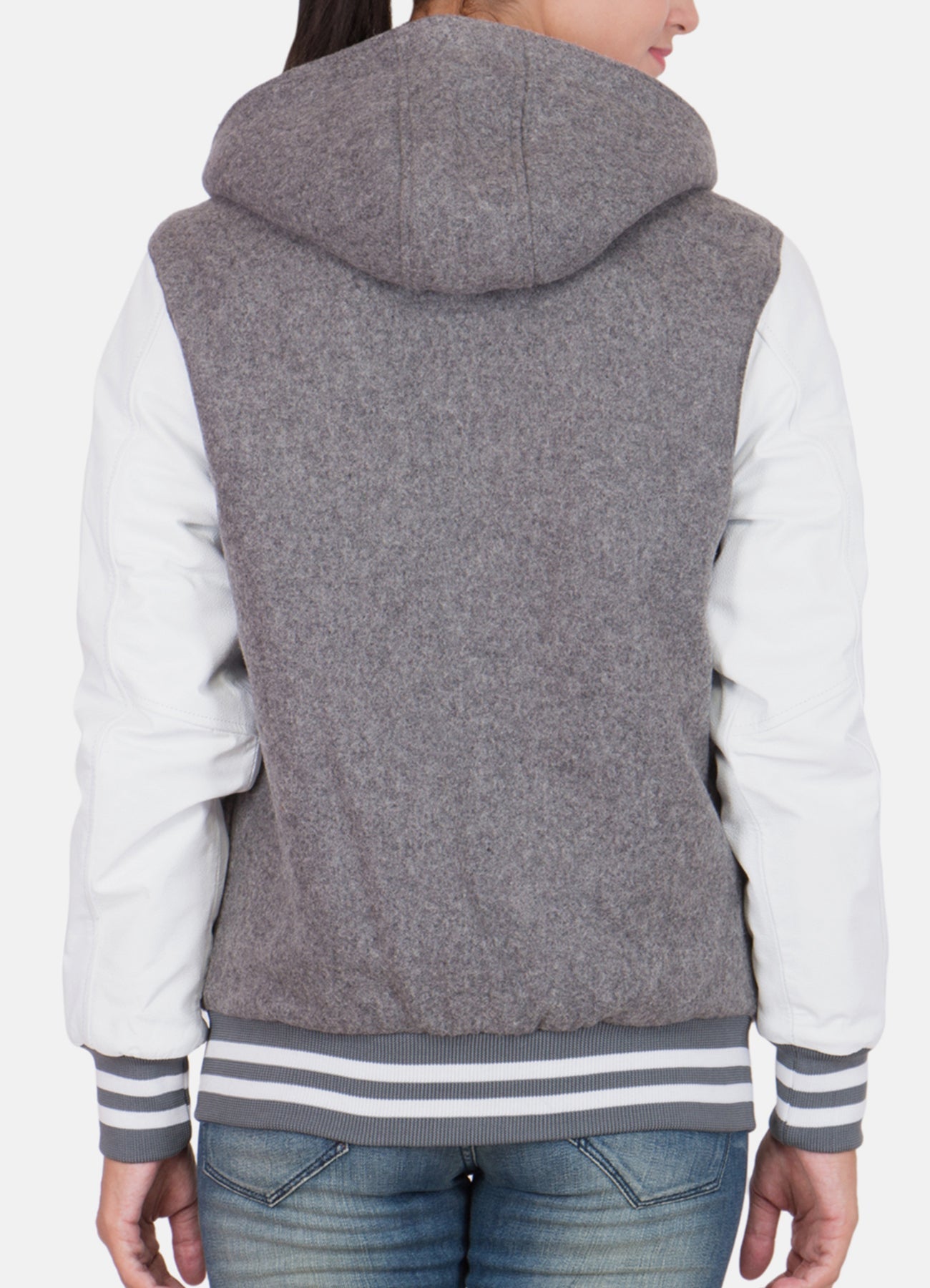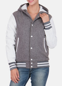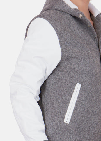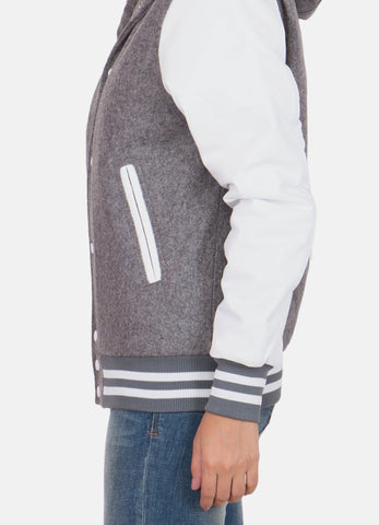 Womens Grey and White Hooded Varsity Jacket Sale