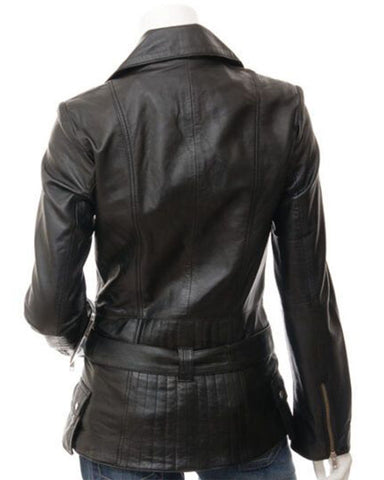 Womens Long Black Biker Real Sheepskin Leather Jacket Sale