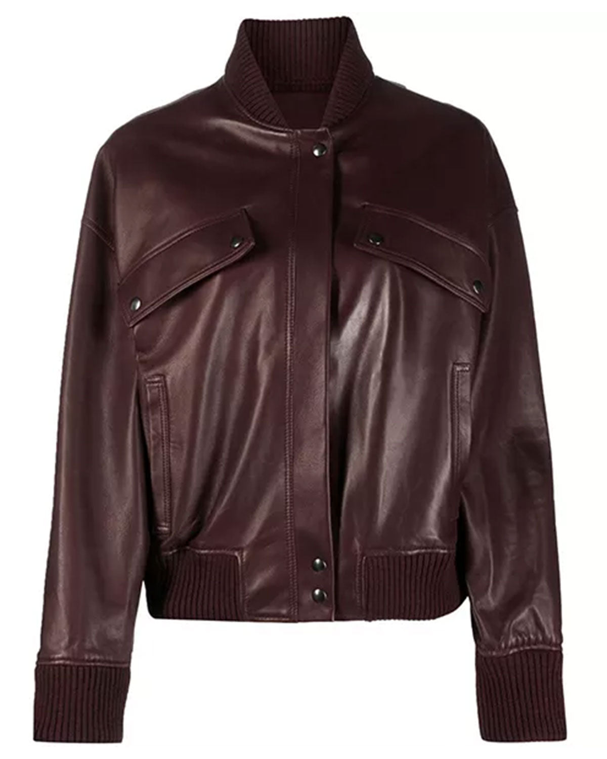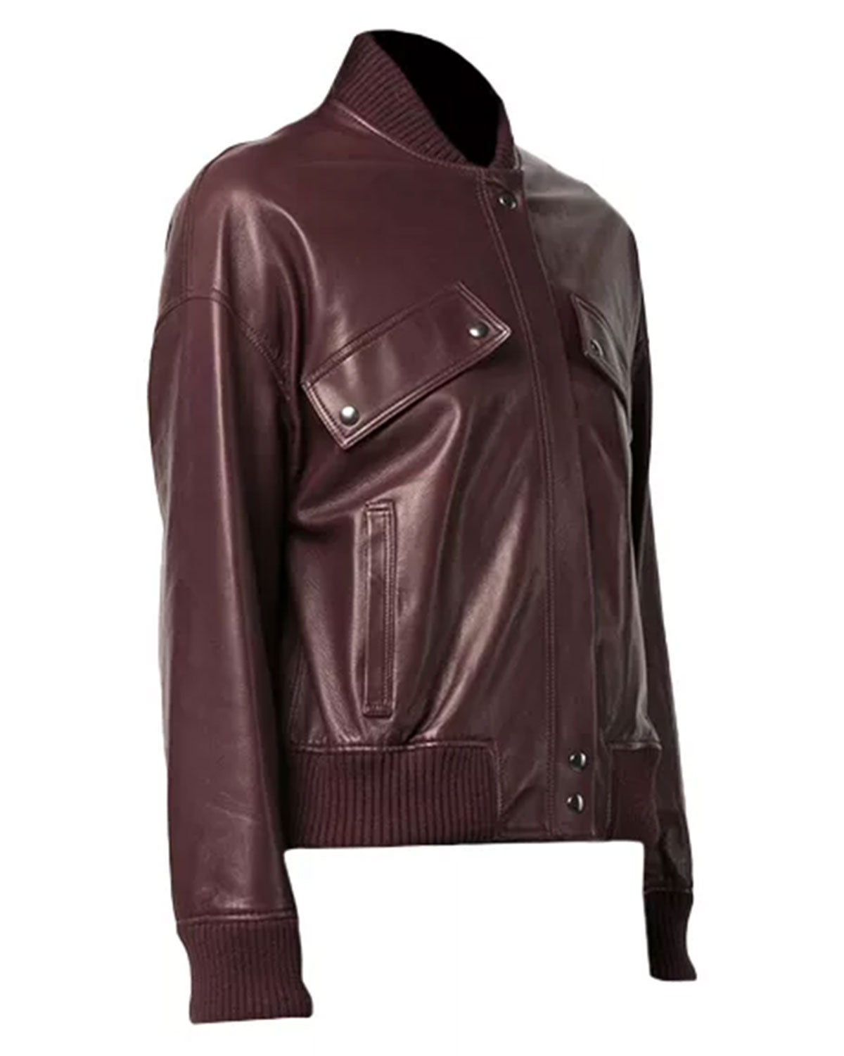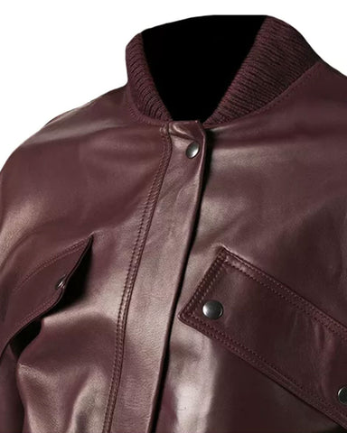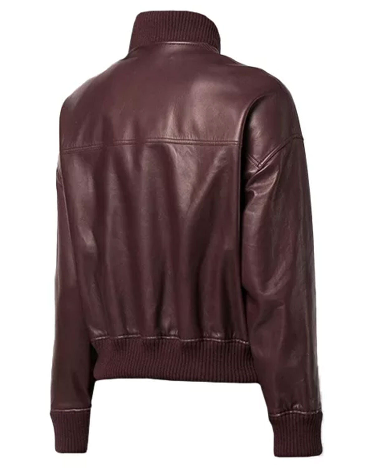 Make a statement with this Maroon Leather Bomber Jacket – a versatile and chic addition to your collection that effortlessly blends sophistication with contemporary flair.