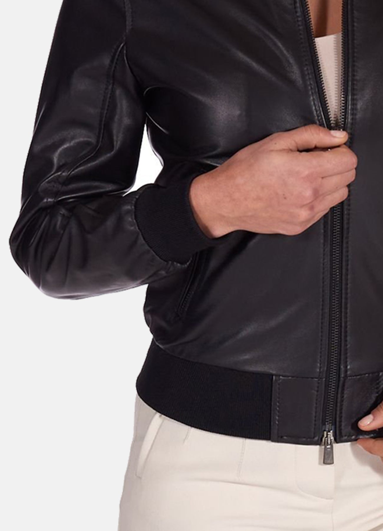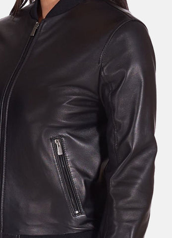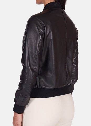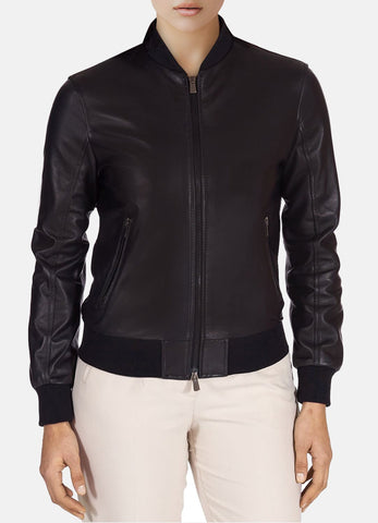 Womens Matt Black Bomber Leather Jacket - X-Small / Black
