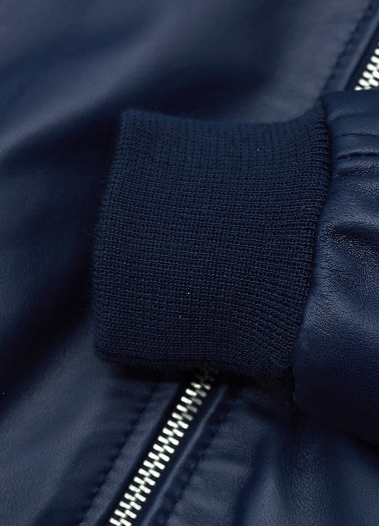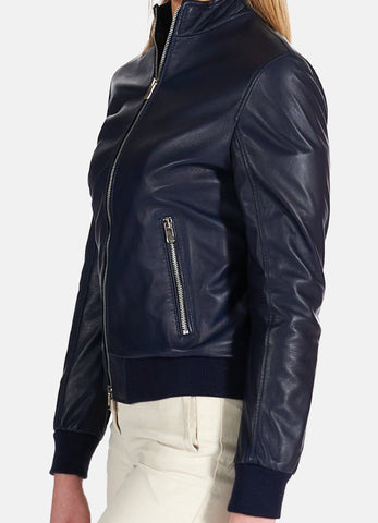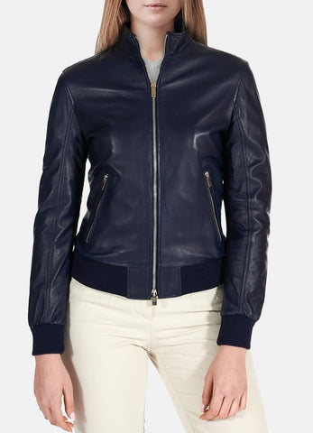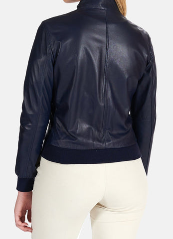 Womens Navy Blue Bomber Leather Jacket - X-Small / Navy Blue