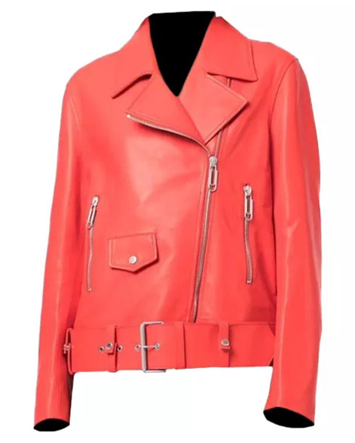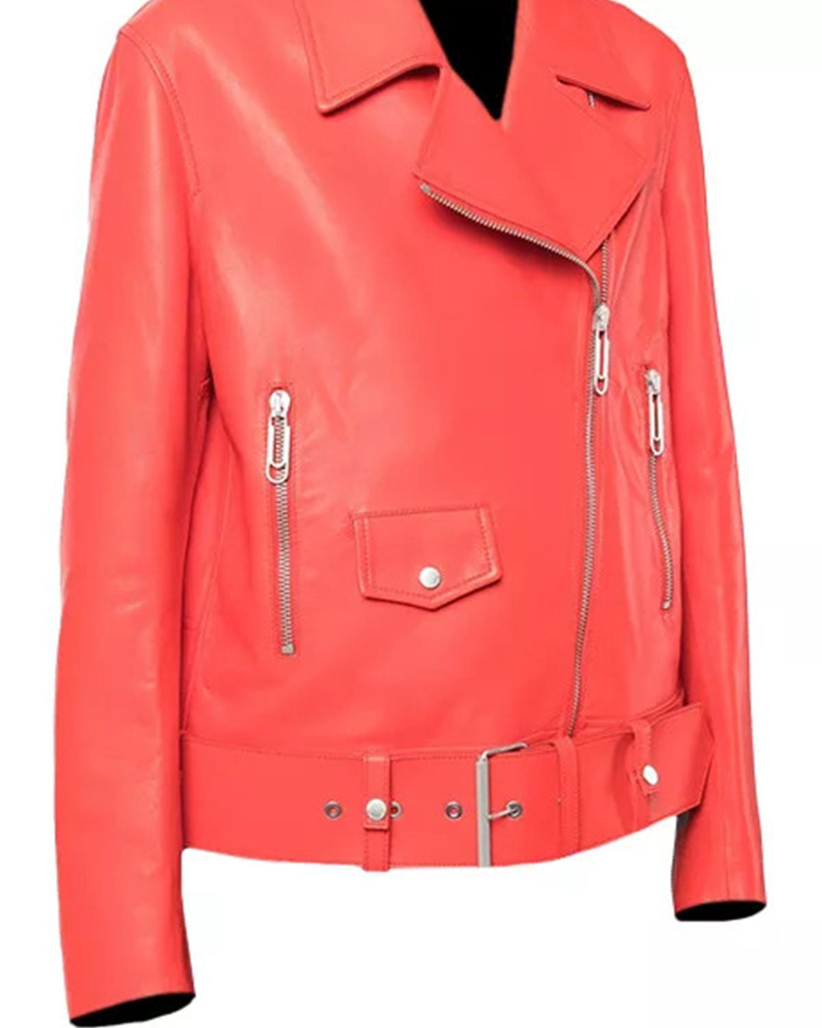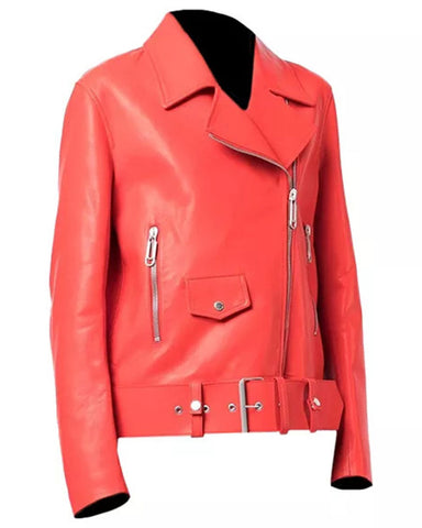 Womens Red Leather Biker Jacket Sale