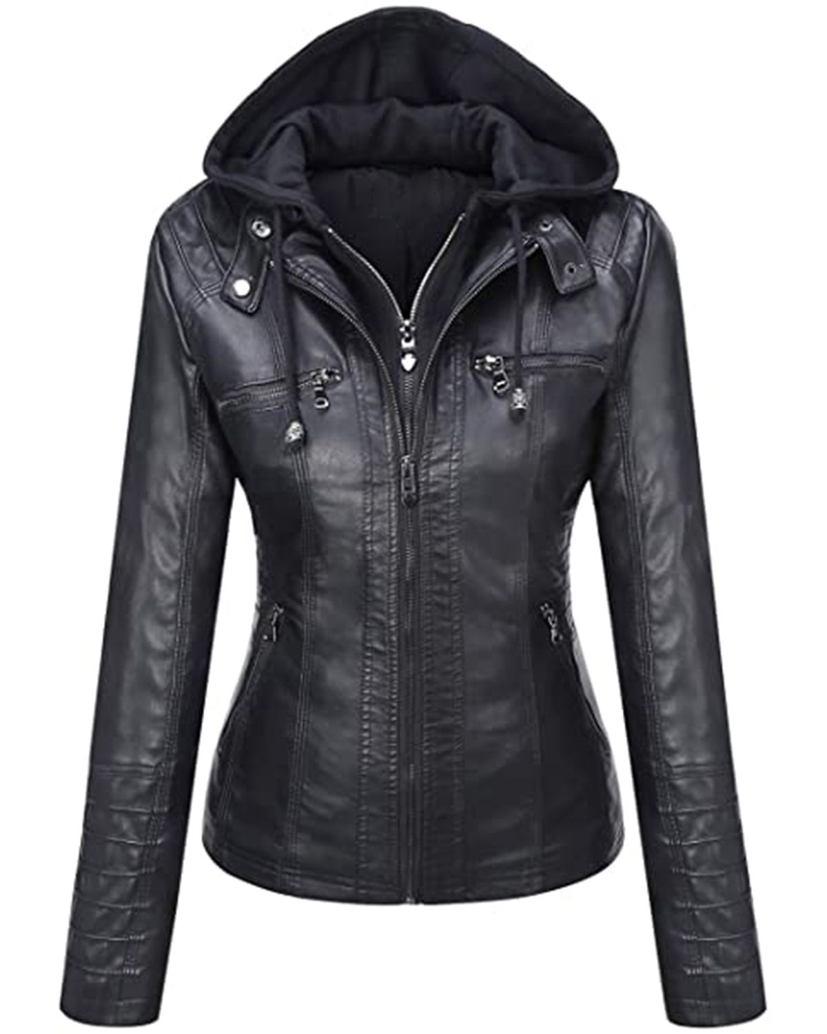 The front zip closure offers a fashionable edge while keeping you snug. Inside, you'll find a comfortable polyester lining, perfect for all-day wear.