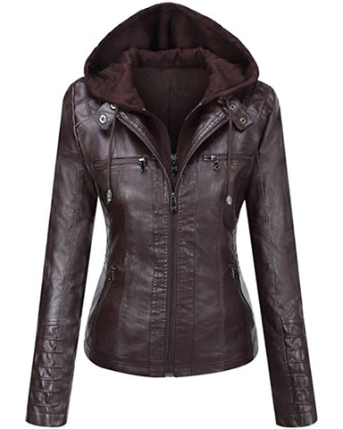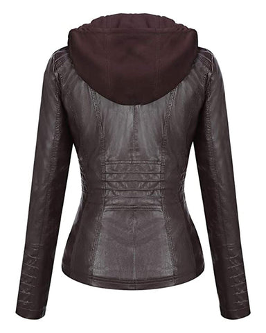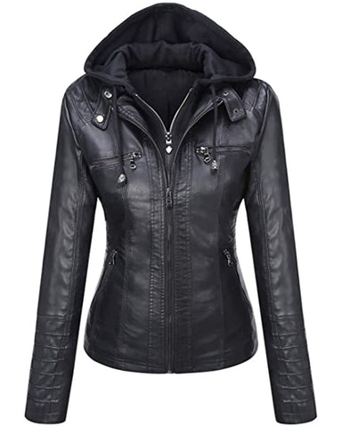 Complete with a round collar and removable hood, this jacket is designed to adapt to your style. Elevate your wardrobe with our Leather Biker Jacket, a timeless symbol of quality and fashion.