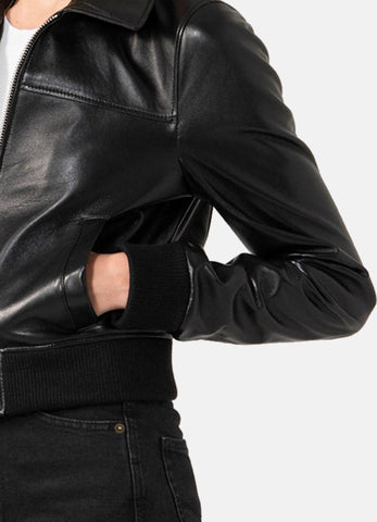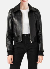 Womens hiny Black Biker Leather Jacket - X-Small / Black