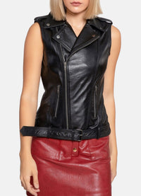 Womens hiny Black Biker Leather Vest - X-Small / Black