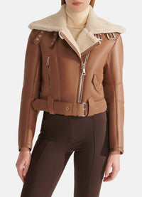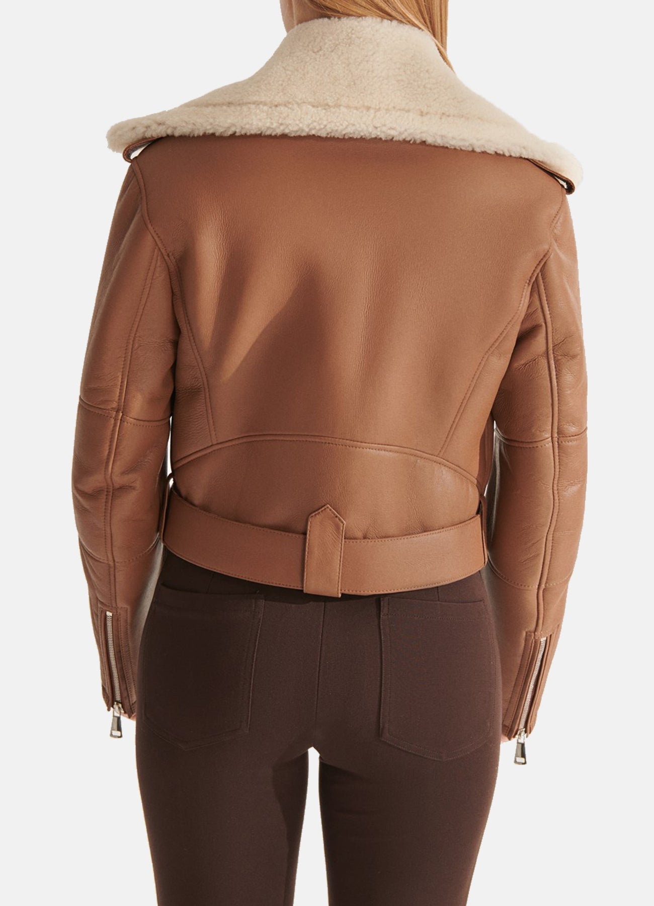 Womens hort Length Tan Shearling Leather Jacket Sale