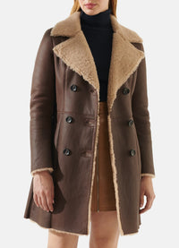 Womens oft Brown Shearling Leather Coat - X-Small / Brown