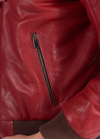 Womens oft Red Bomber Leather Jacket Sale