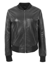 Womens Stylish Black Bomber Leather Jacket - XS / Black