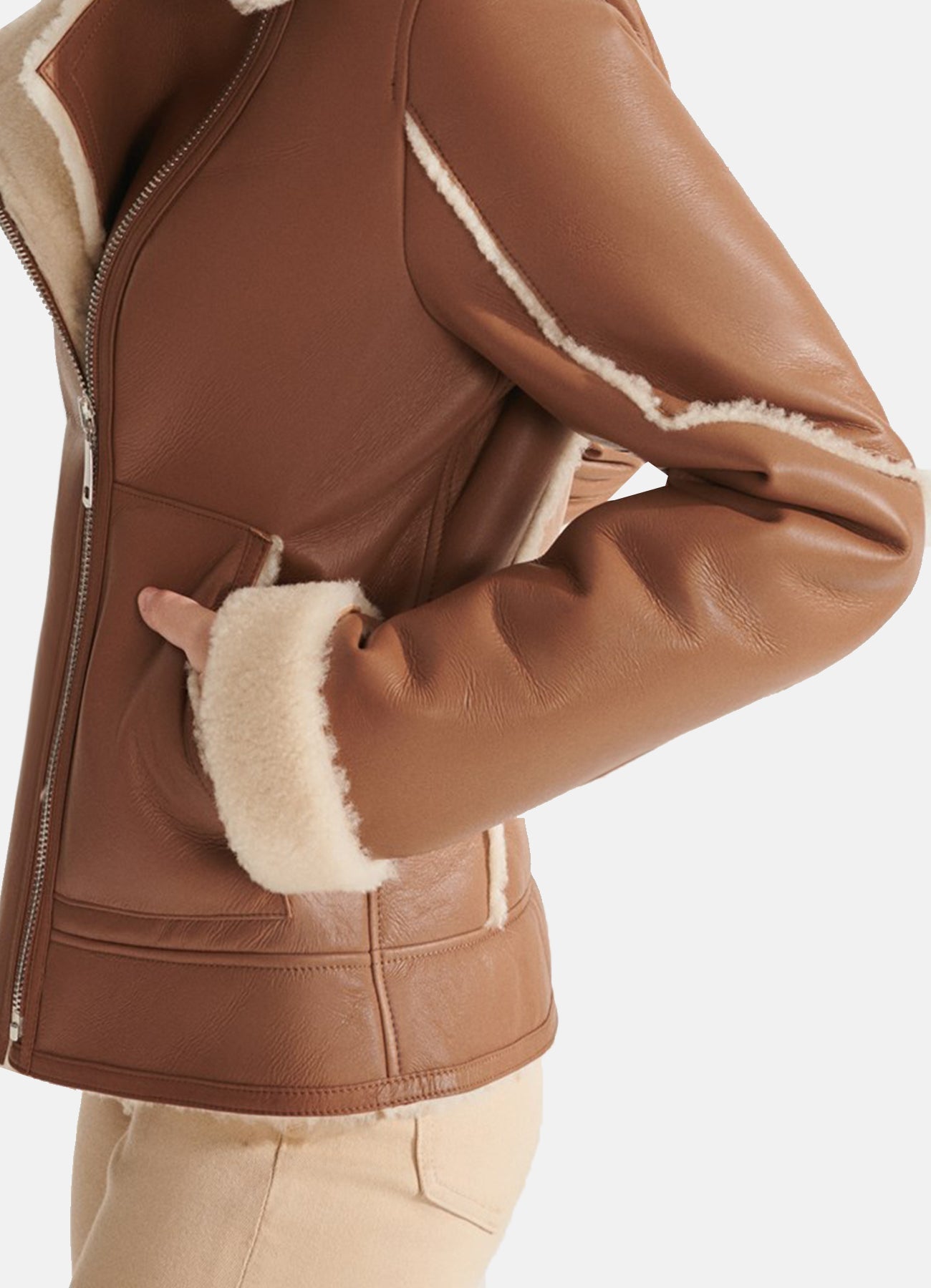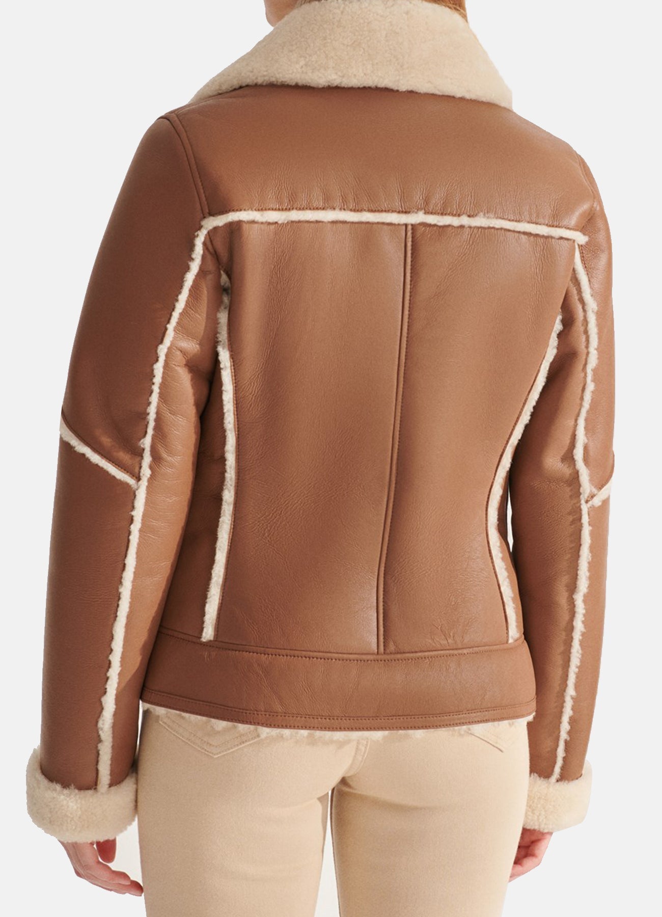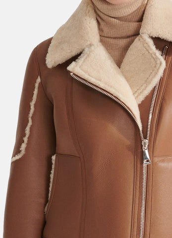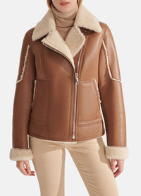 Womens TAN Sports Shearling Leather Jacket - X-Small / TAN