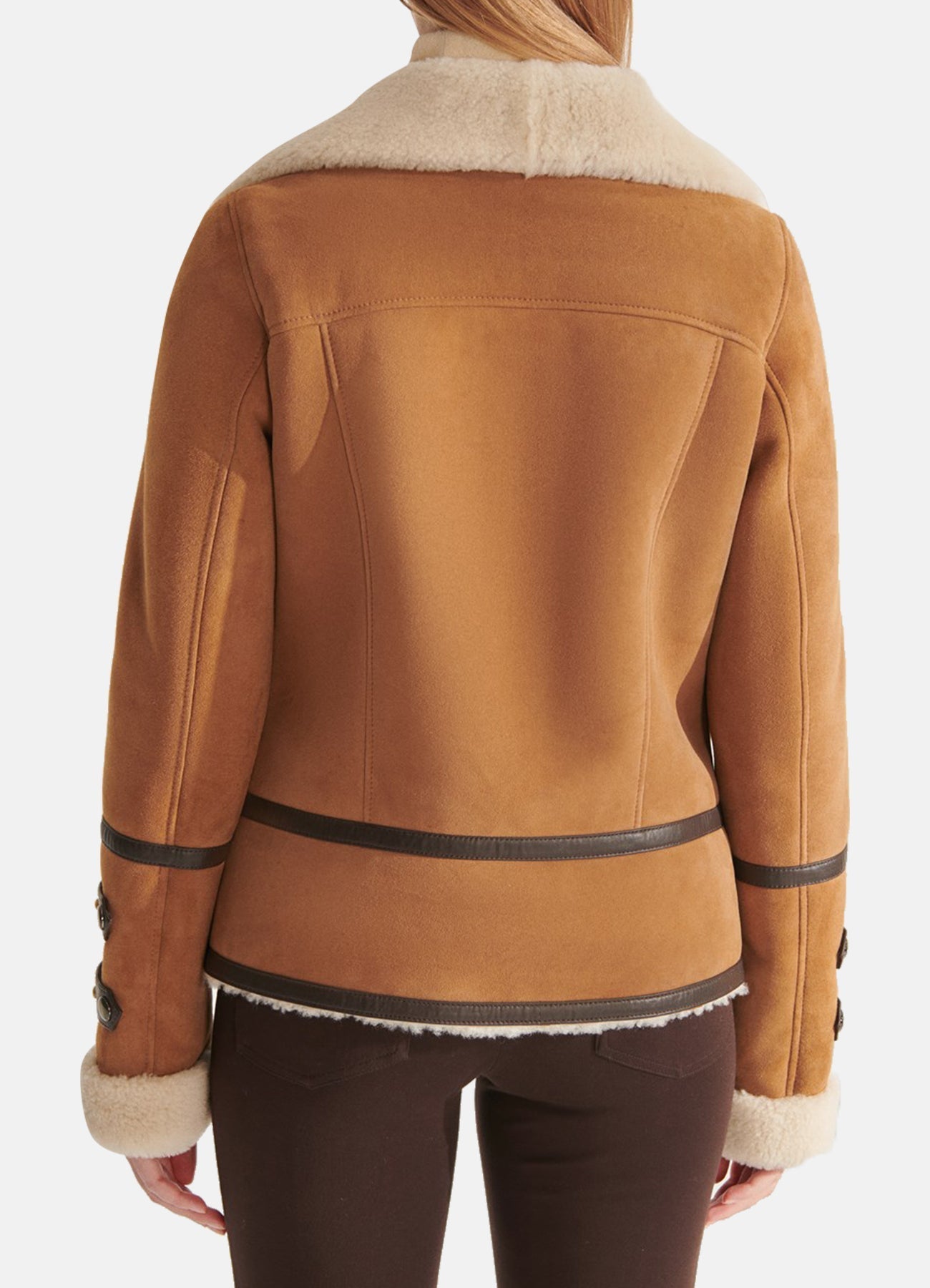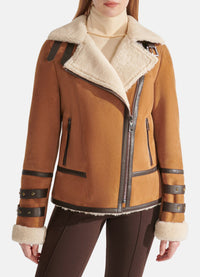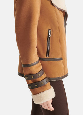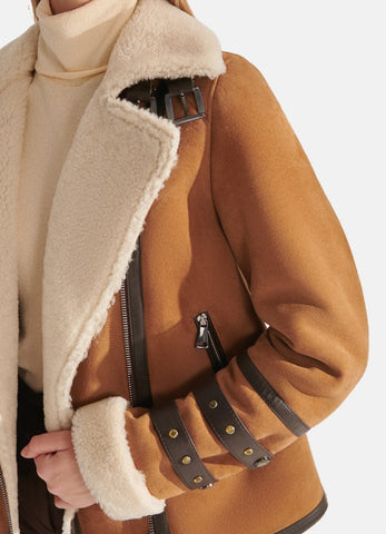 Womens Tan Suede Shearling Leather Jacket - X-Small / TAN