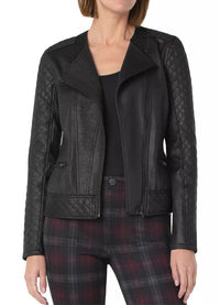 Womens Vintage Black Biker Leather Jacket - X-Small / Black