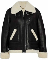 With its full-length sleeves and round cuffs, this Womens B3 Shearling Leather Jacket offers a classic and versatile appeal. The black color adds a touch of timeless style and pairs well with various outfits. Whether you're dressing up for a special occasion or going for a casual look, this leather jacket is a perfect choice. Elevate your style with our Black Color Womens Sheepskin Leather Jacket and make a statement wherever you go.